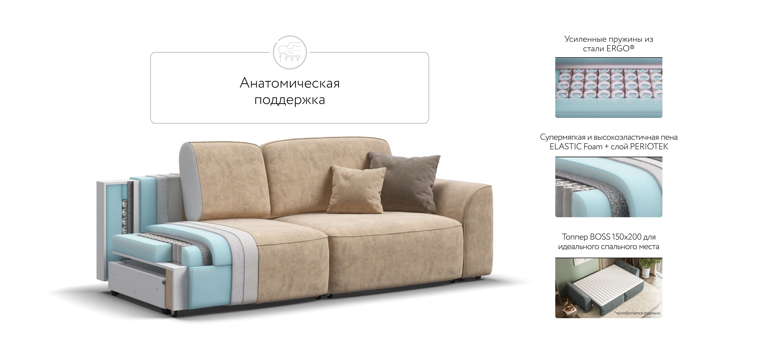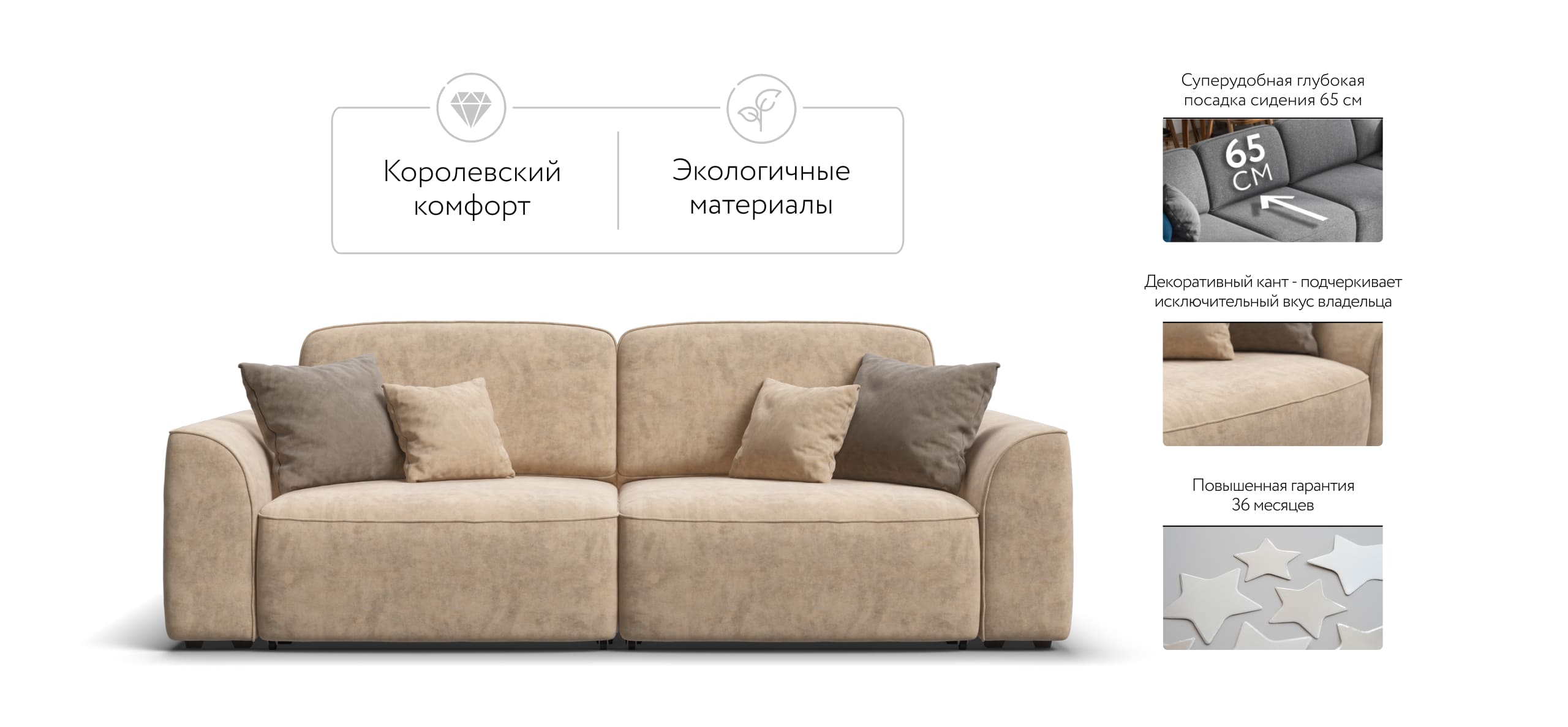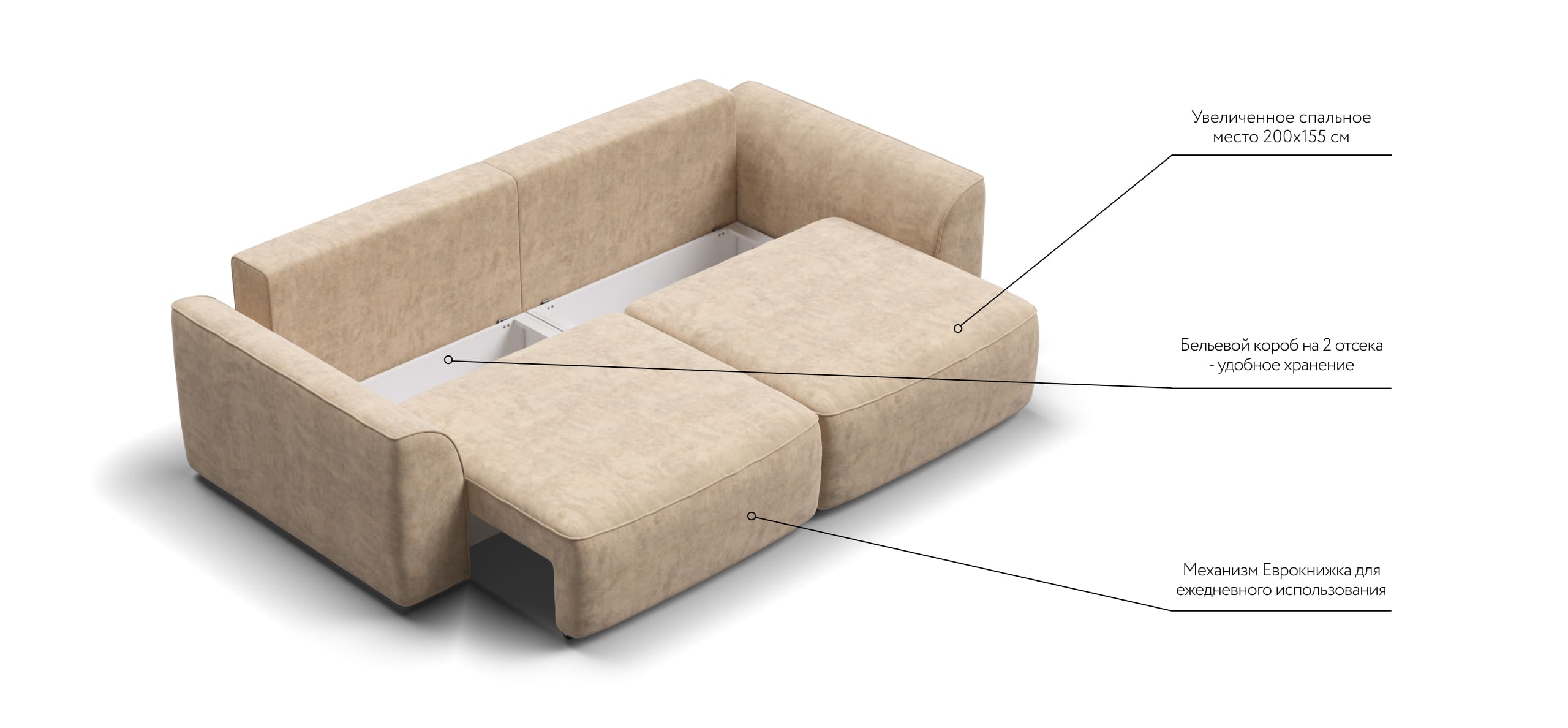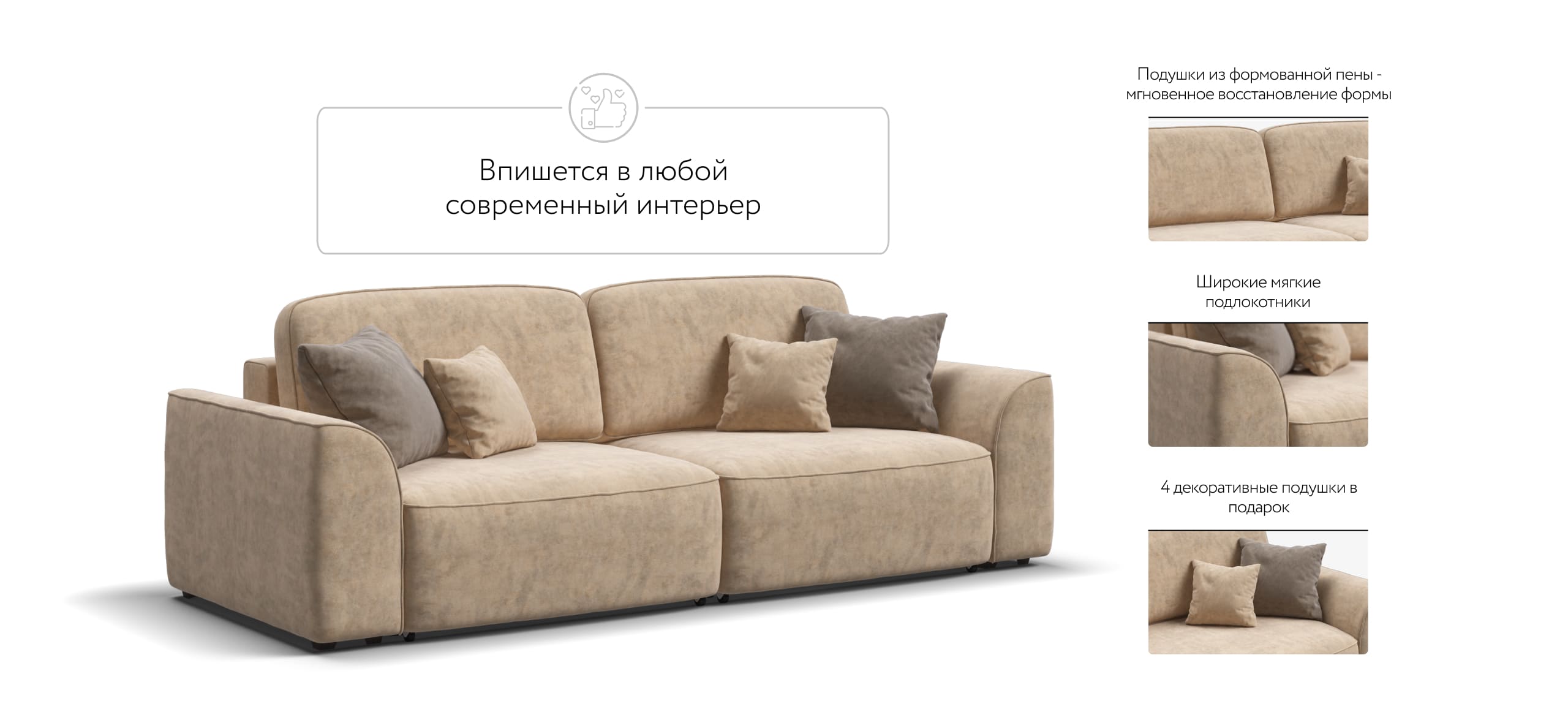Комфортная посадка, скругленные линии, объемные подушки - диван, который наполнит ваш дом уютом и комфортом. Каждое посадочное место можно выдвинуть вперед и получить угловой диван, на котором с комфортом разместится небольшая компания. А в разложенном виде диван превращается в комфортное спальное место.
