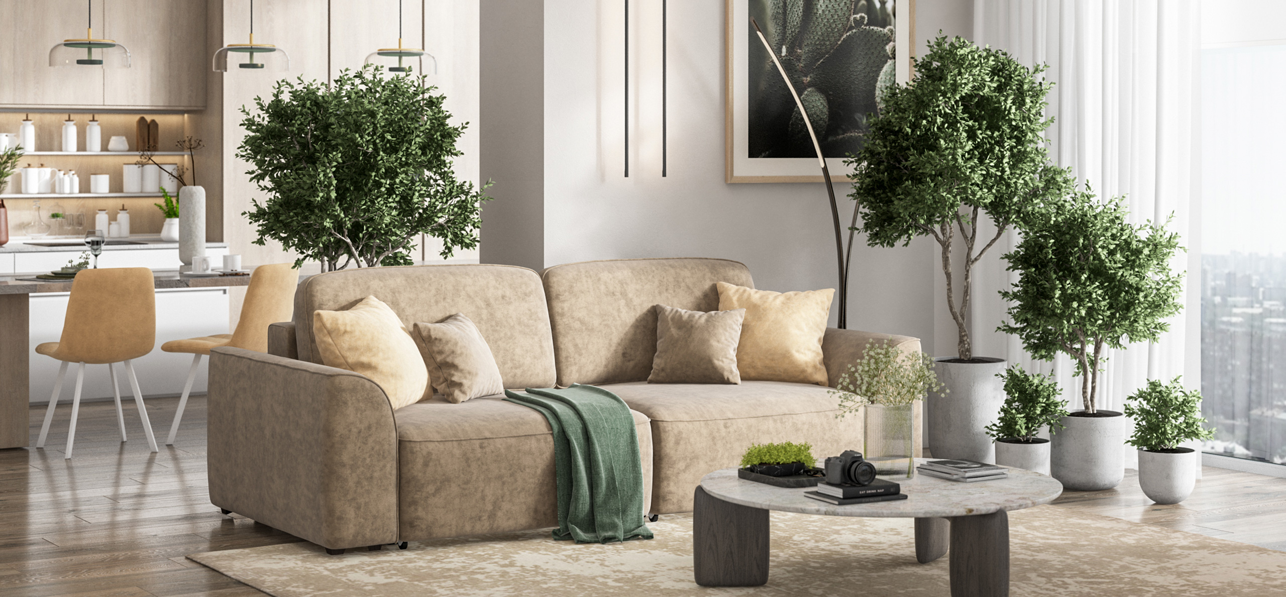 Простой и надежный механизм еврокнижка позволяет ставить диван вплотную к стене.