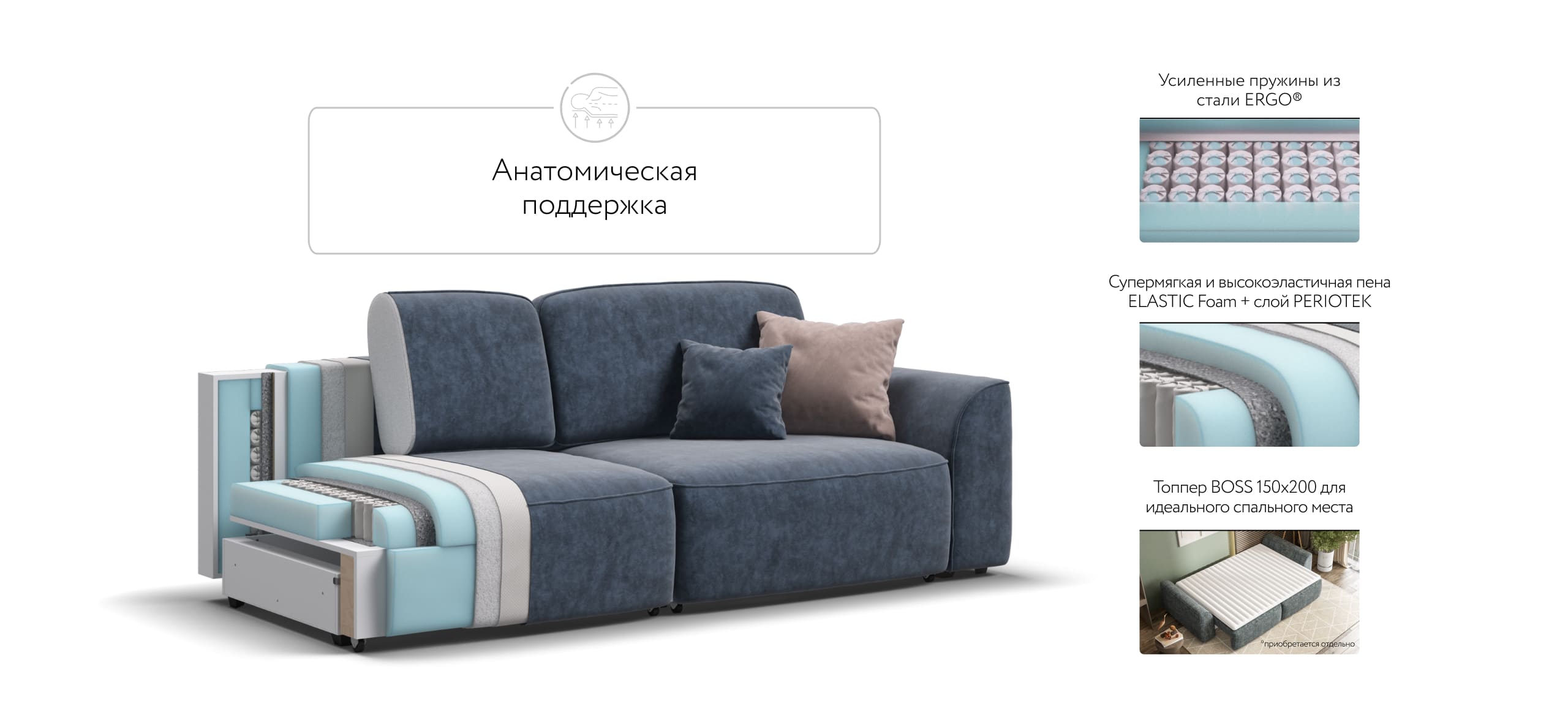 Усиленный блок независимых пружин ERGO + слой PERIOTEK придают объём и упругость.