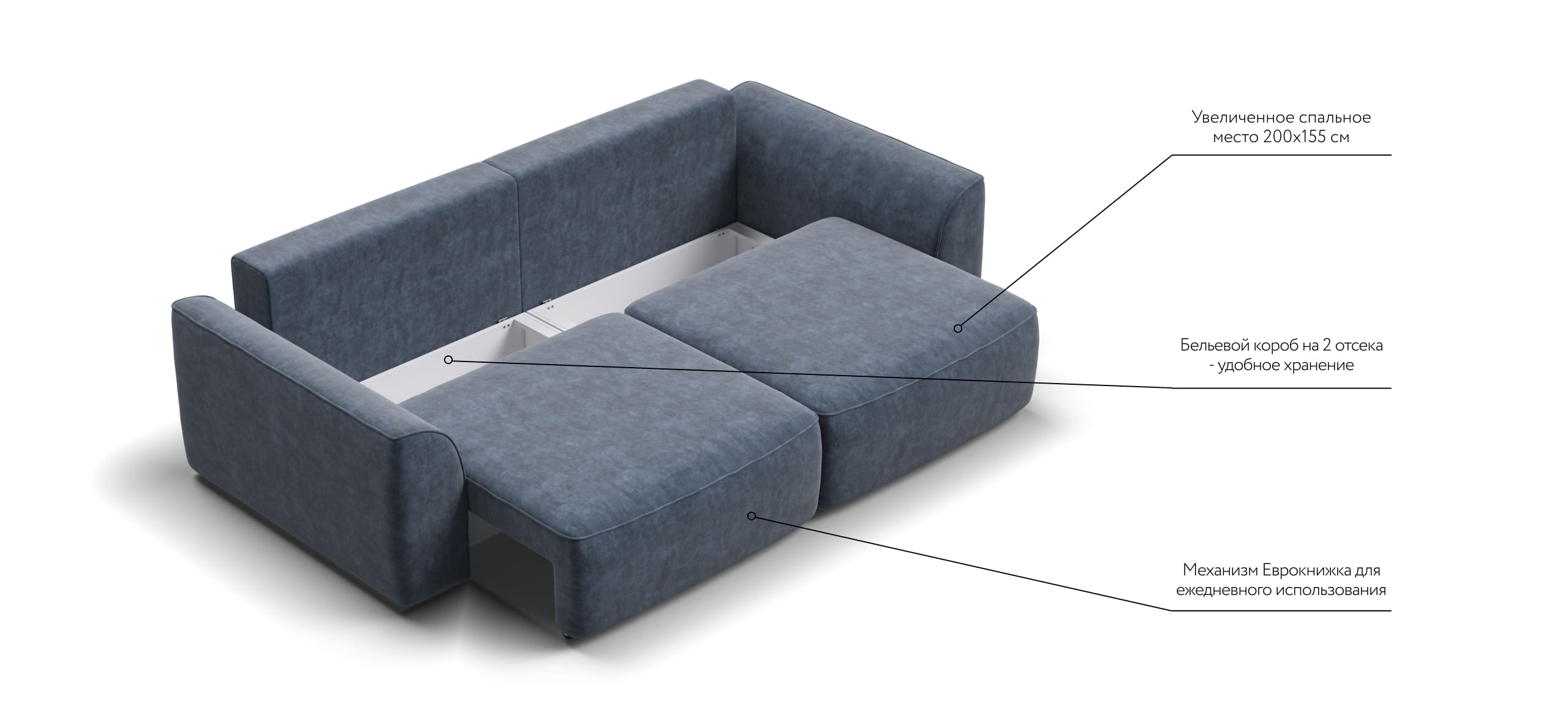 Простой и надежный механизм еврокнижка позволяет ставить диван вплотную к стене.