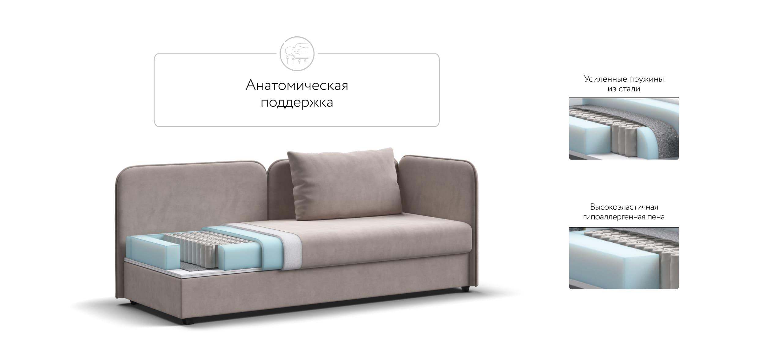 Современная, функциональная и стильная тахта Ирис способна дополнить Вашу комнату уютом. Тахта отлично сочетает в себе две функции: днем – уютное место для отдыха и работы в качестве дивана, а ночью полноценное спальное место. Мягкие боковые стенки защитят от соприкосновения со стеной во время сна, а матрас на независимом пружинном блоке обеспечит комфорт во время отдыха.