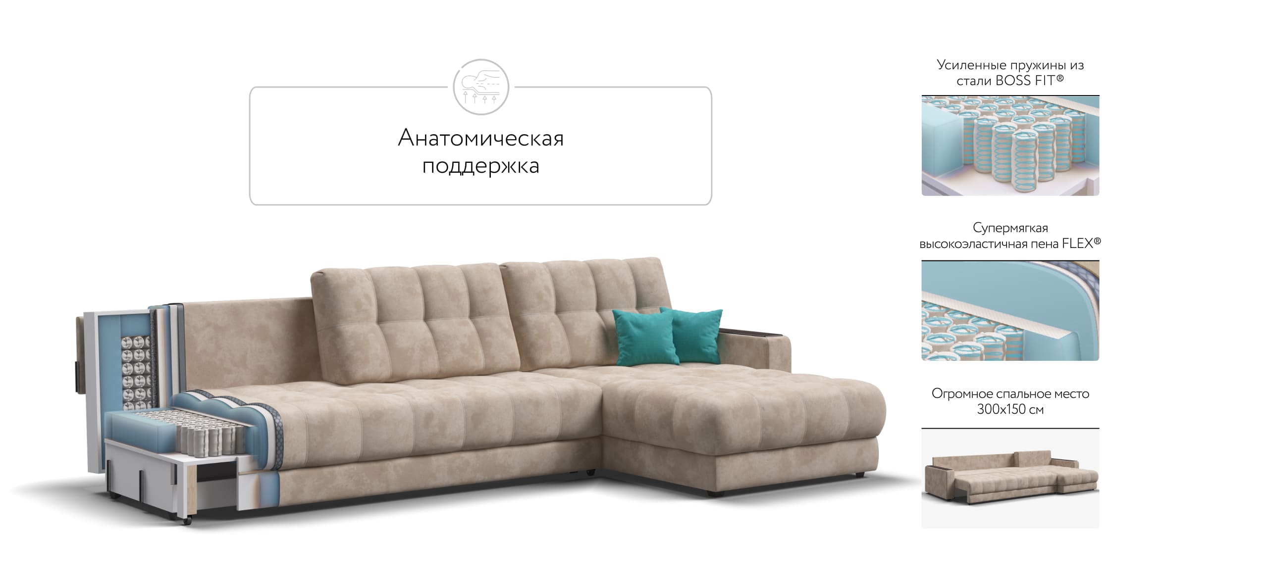 Продуманный до мелочей диван BOSS сочетает в себе надежный каркас, мягкие ткани, многофункциональность и быструю сборку за 1 минуту без инструментов - ощутите комфорт у себя дома!