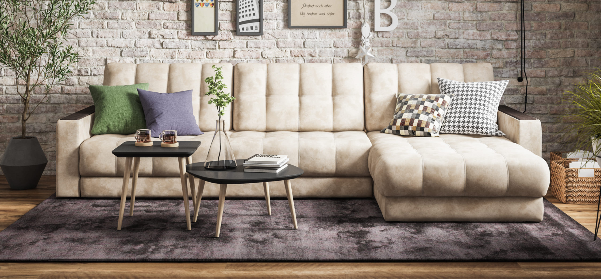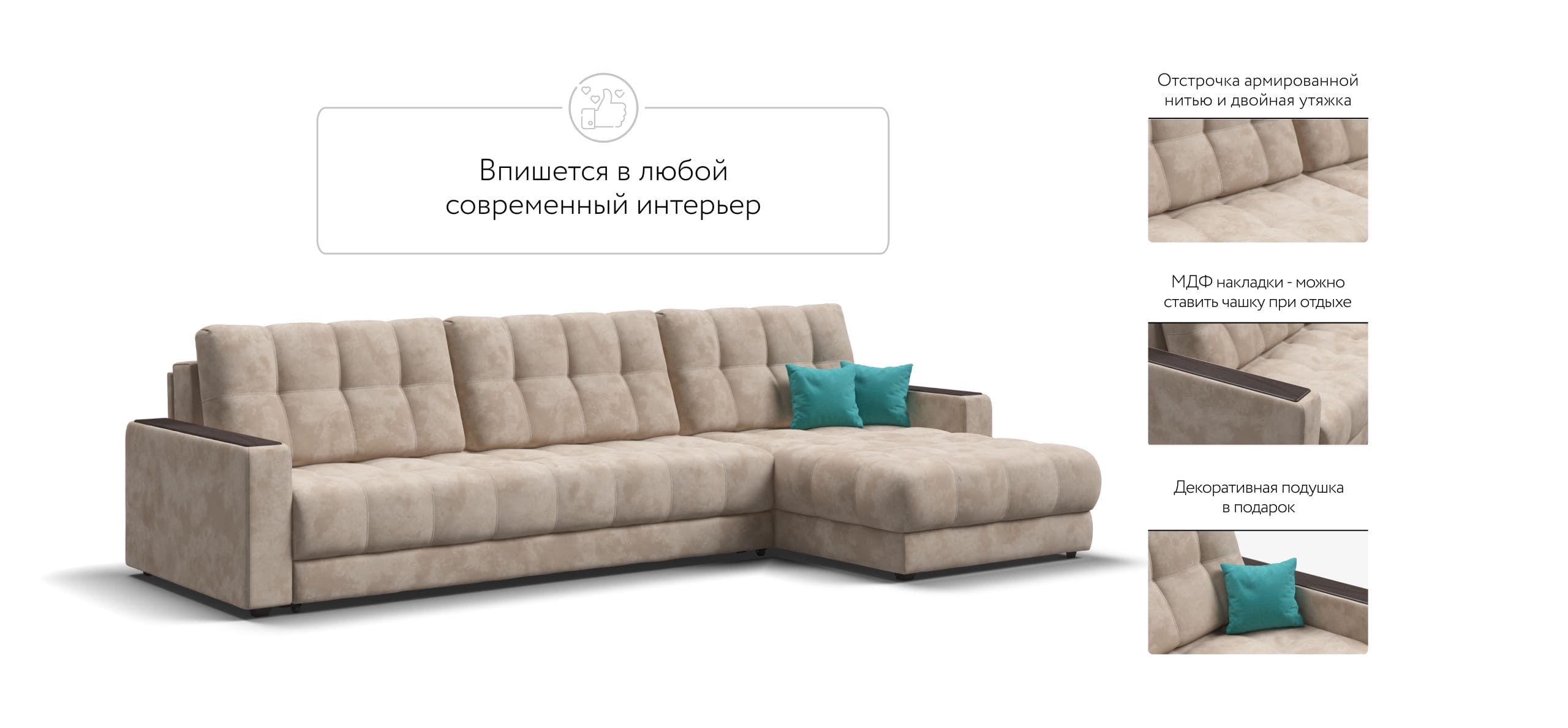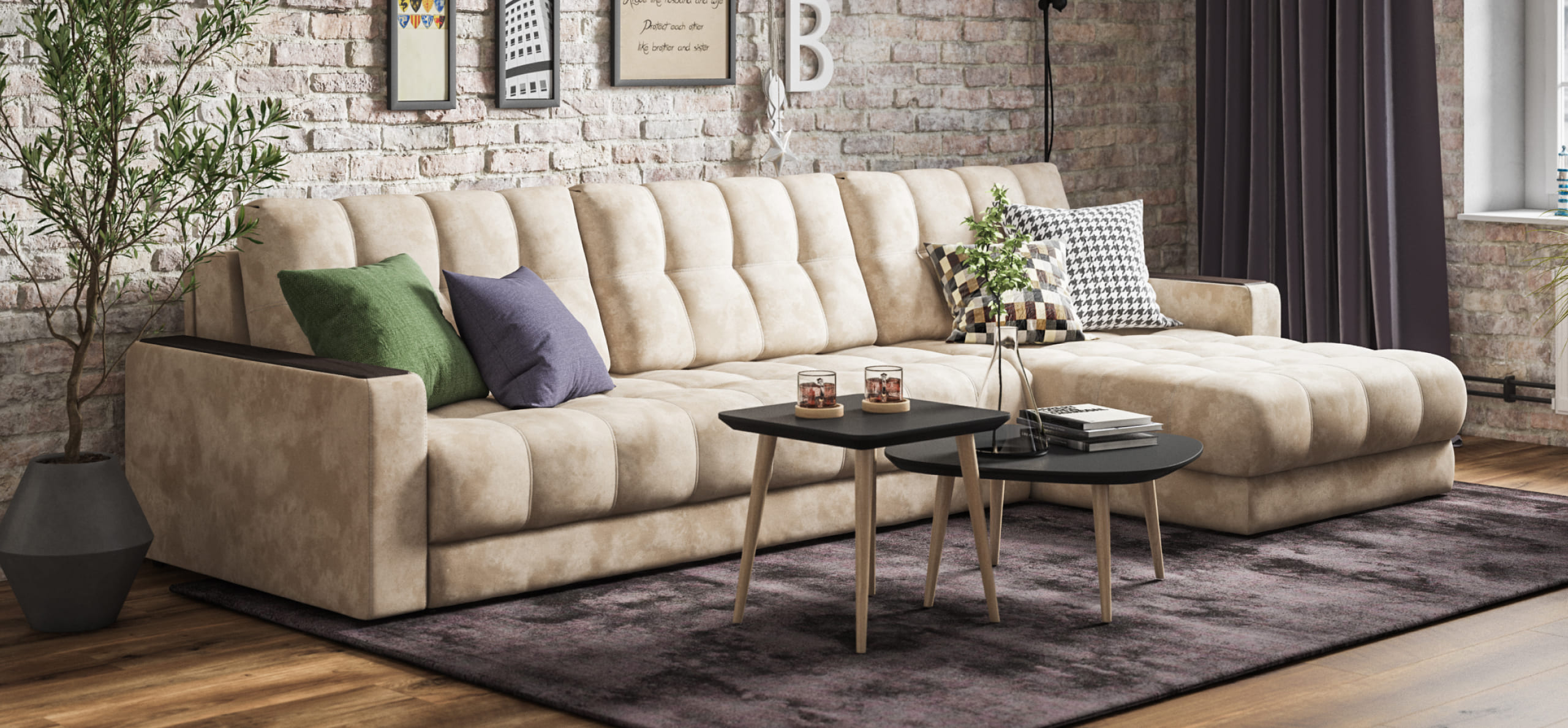 Угловой диван BOSS MAX - большой, стильный и комфортный диван, предназначенный для просторной комнаты.