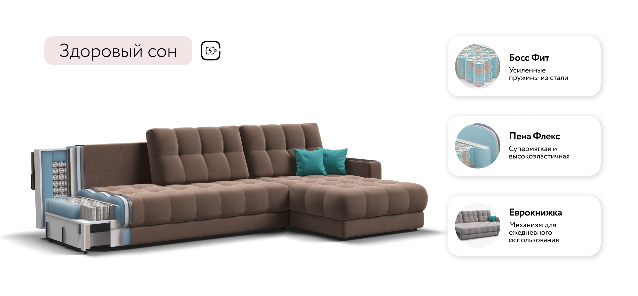 Продуманный до мелочей диван BOSS сочетает в себе надежный каркас, мягкие ткани, многофункциональность и быструю сборку за 1 минуту без инструментов - ощутите комфорт у себя дома!