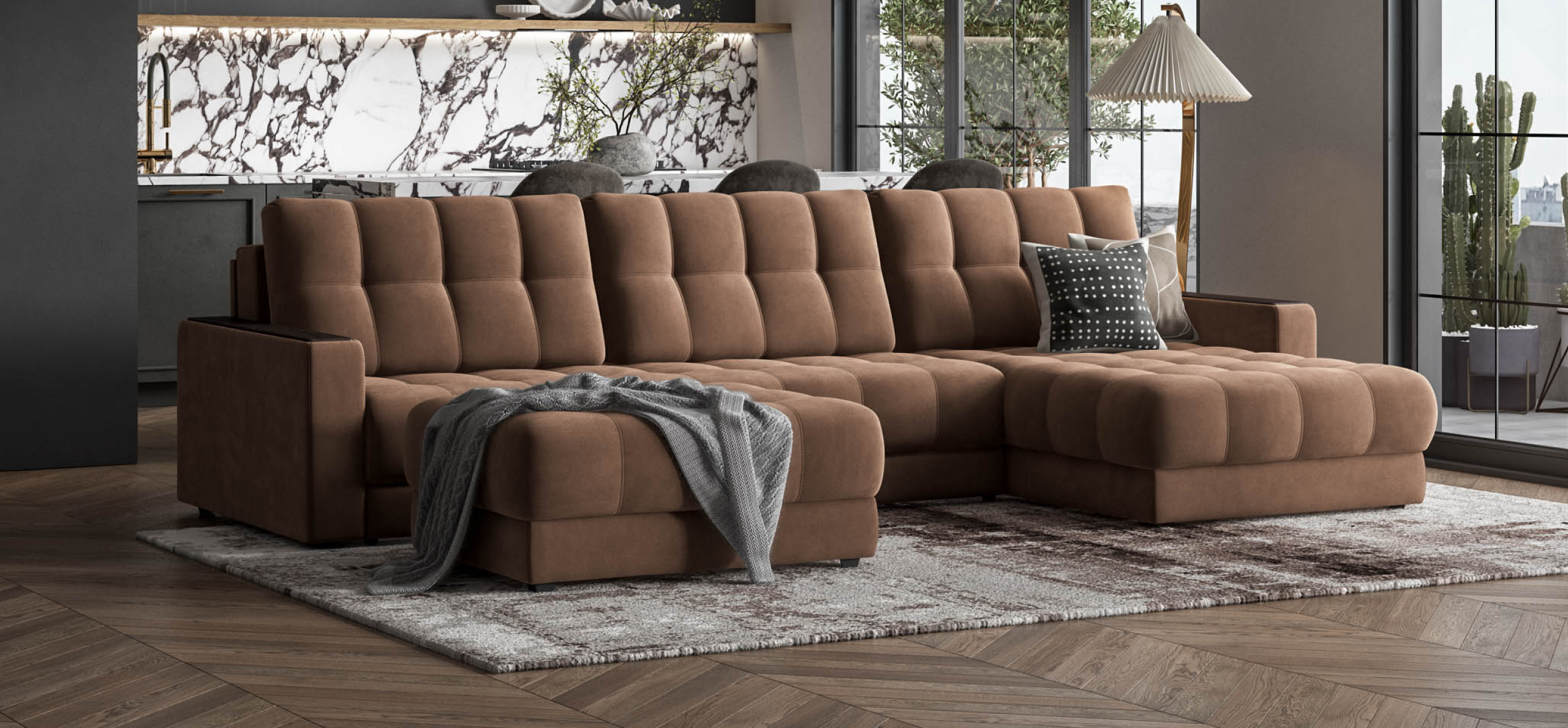 Угловой диван BOSS MAX - большой, стильный и комфортный диван, предназначенный для просторной комнаты.