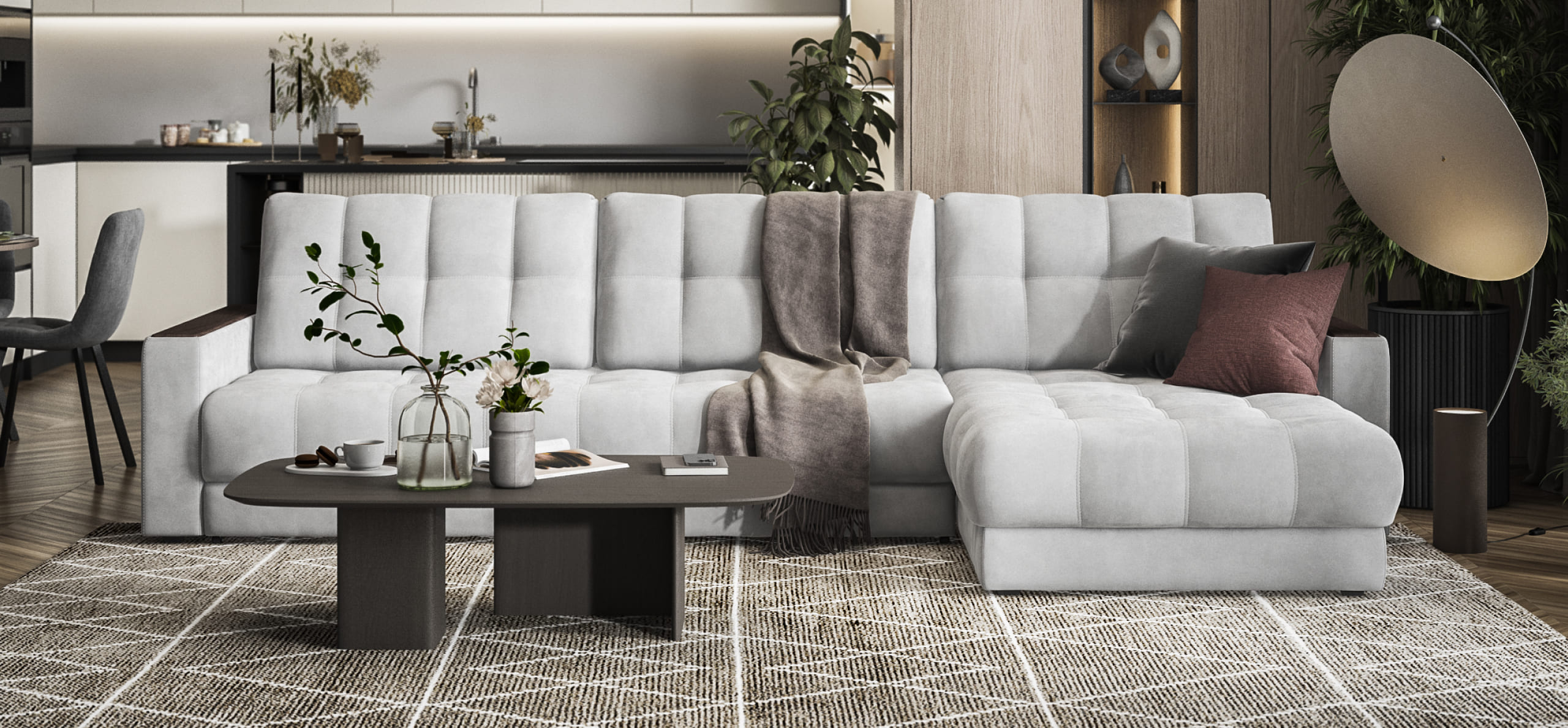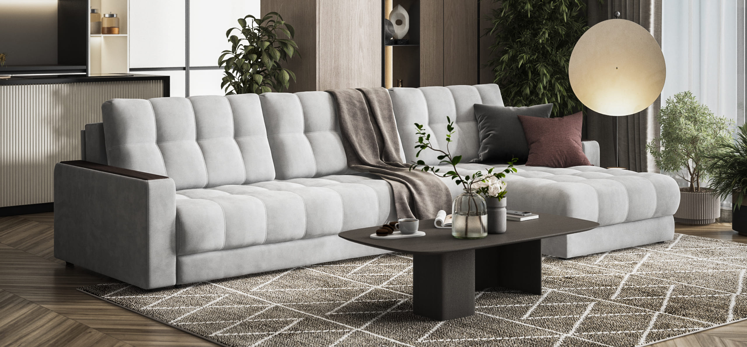 Угловой диван BOSS MAX - большой, стильный и комфортный диван, предназначенный для просторной комнаты.