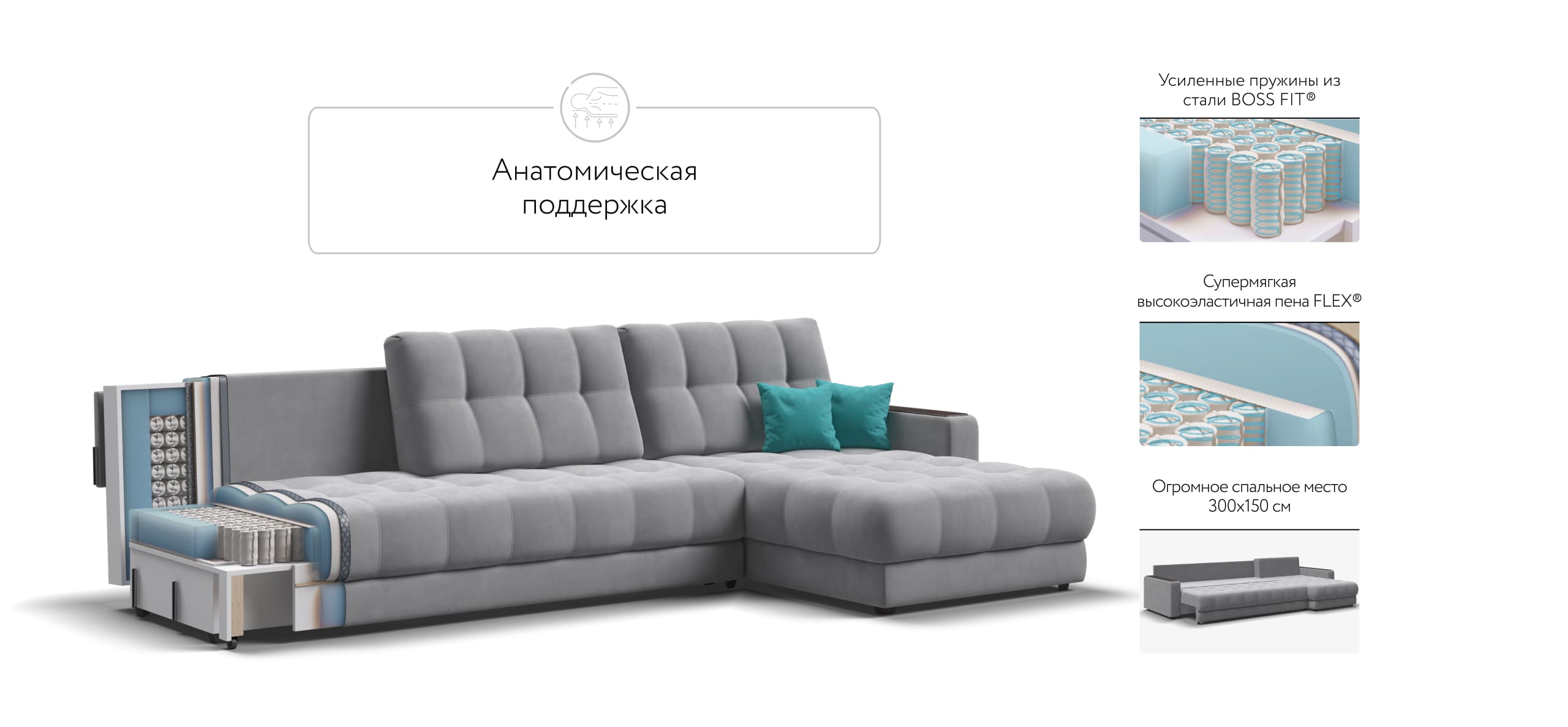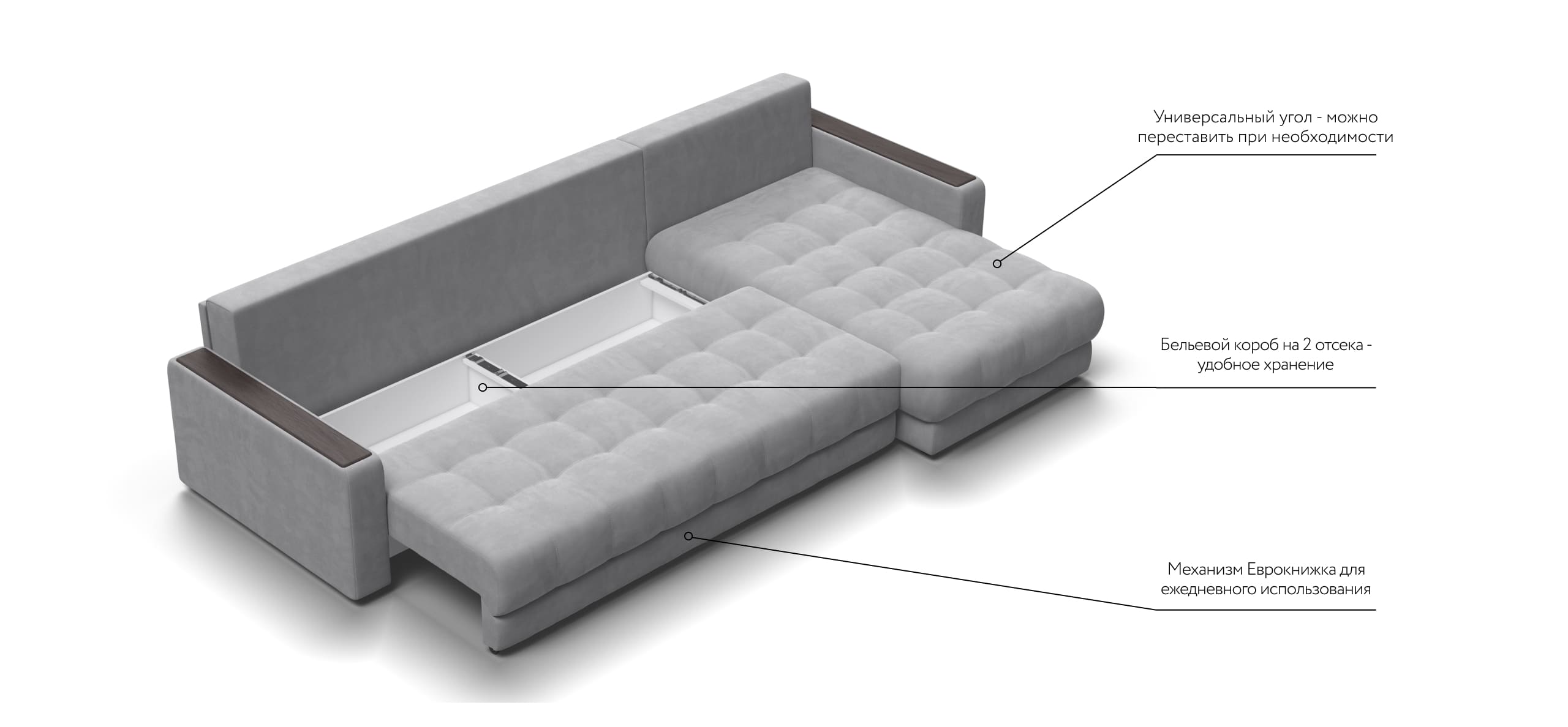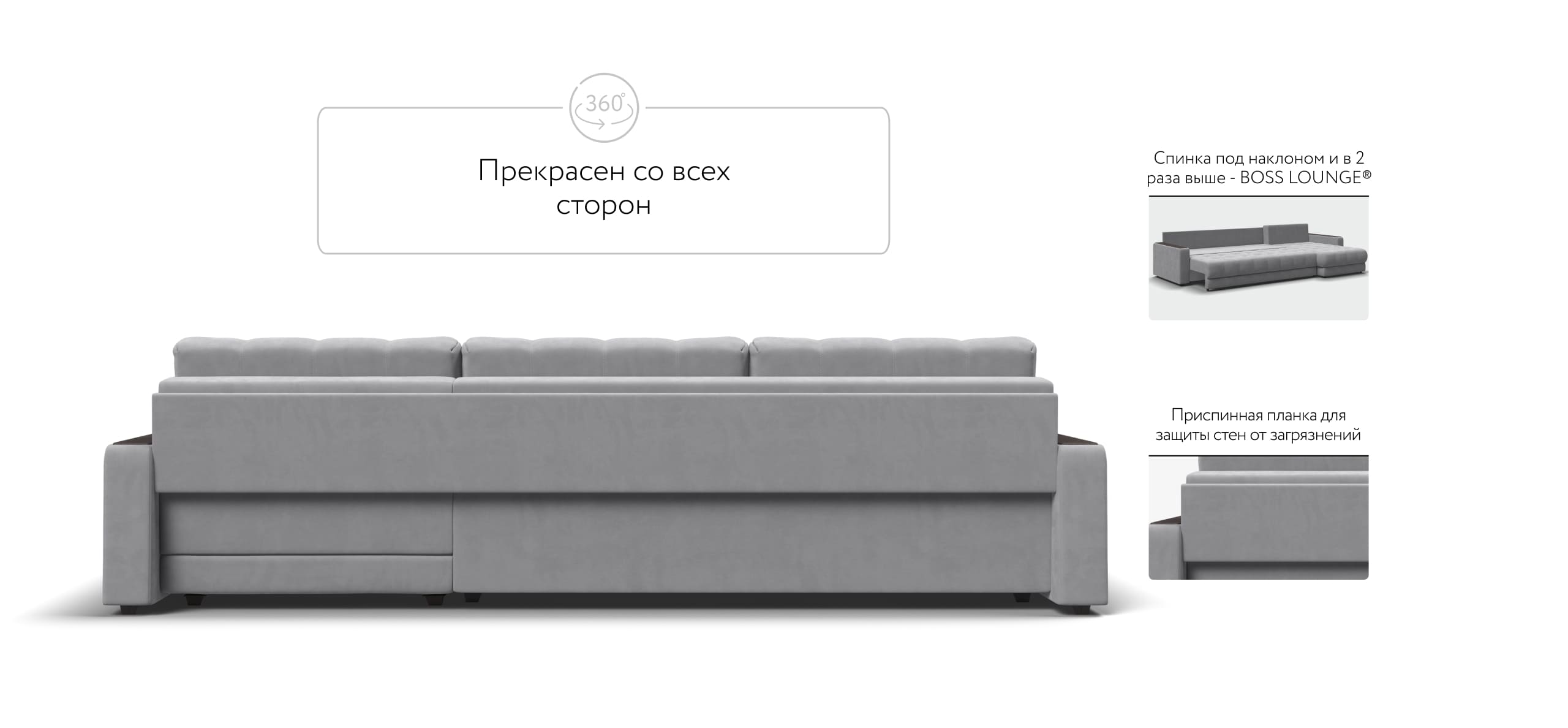 BOSS EASY – сборка дивана за 1 минуту без инструментов. Универсальный угол - положение угла клиент определяет при сборке.