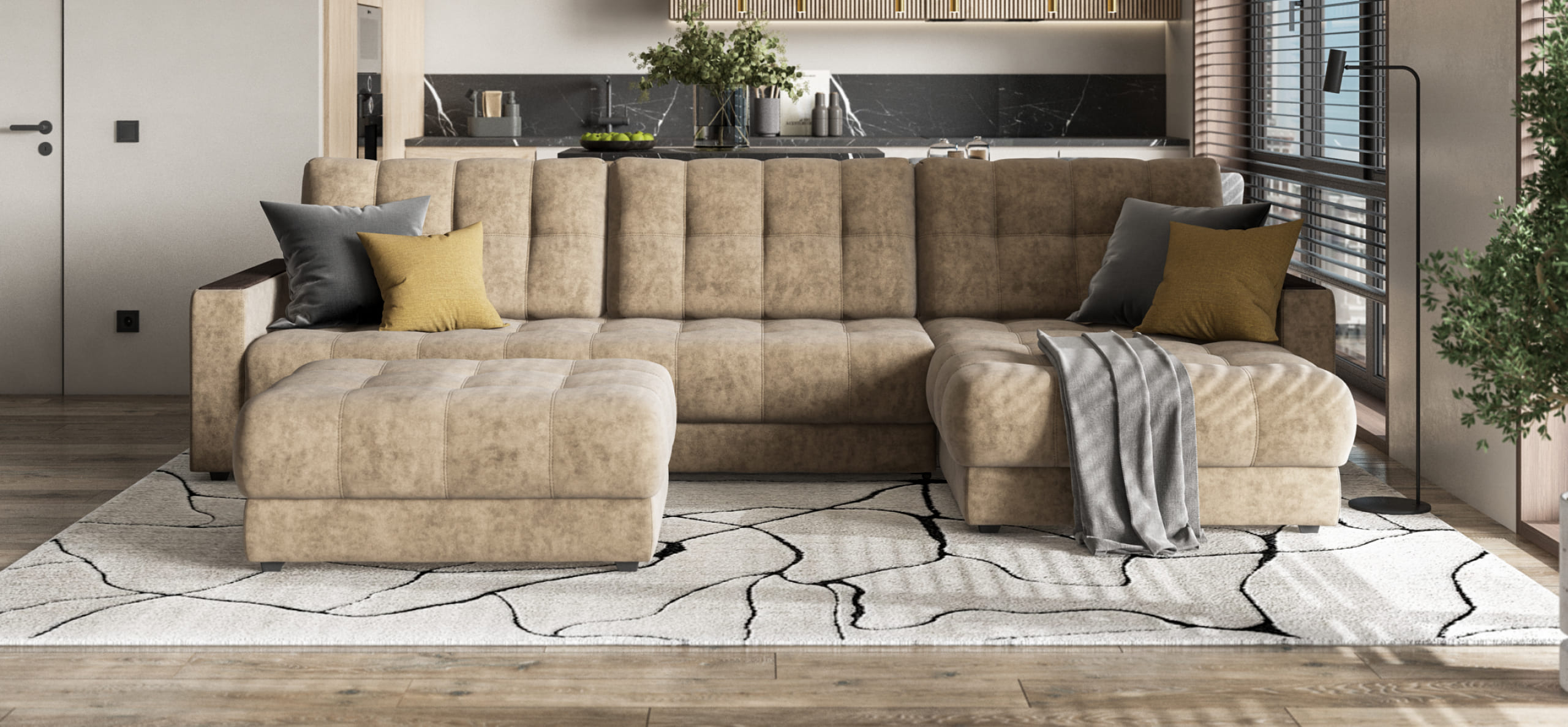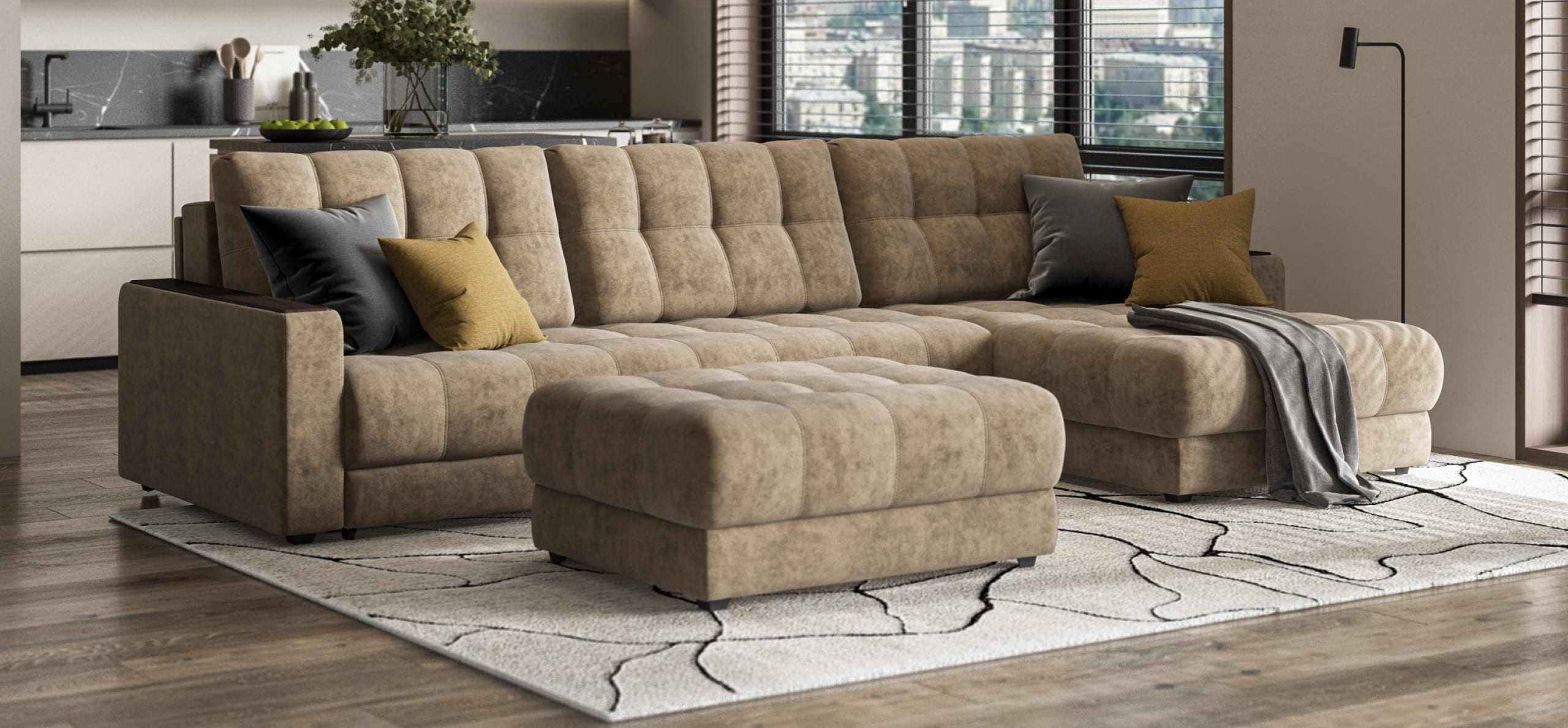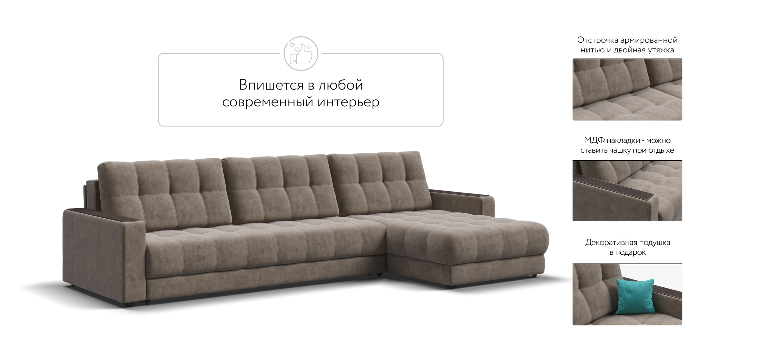Угловой диван BOSS MAX - большой, стильный и комфортный диван, предназначенный для просторной комнаты.