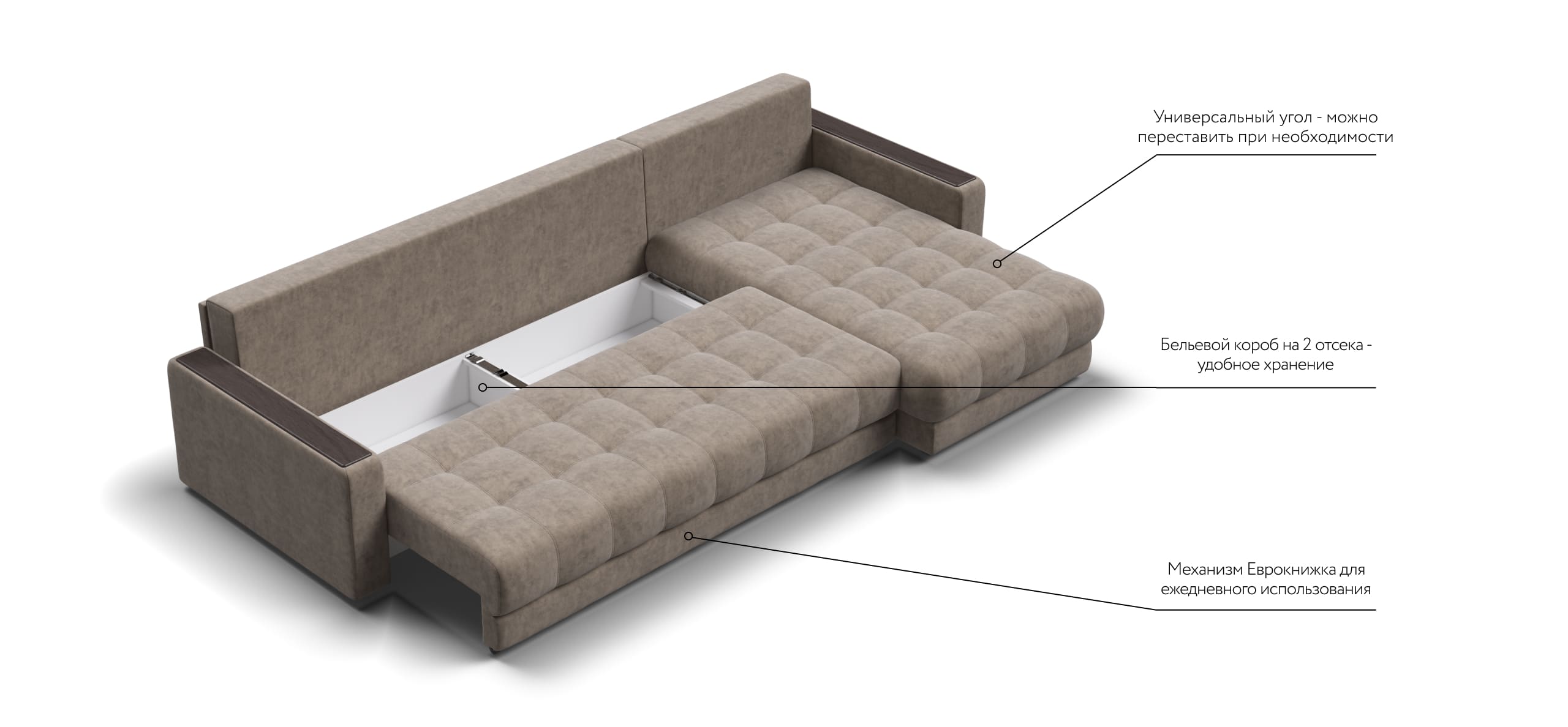 Продуманный до мелочей диван BOSS сочетает в себе надежный каркас, мягкие ткани, многофункциональность и быструю сборку за 1 минуту без инструментов - ощутите комфорт у себя дома!
