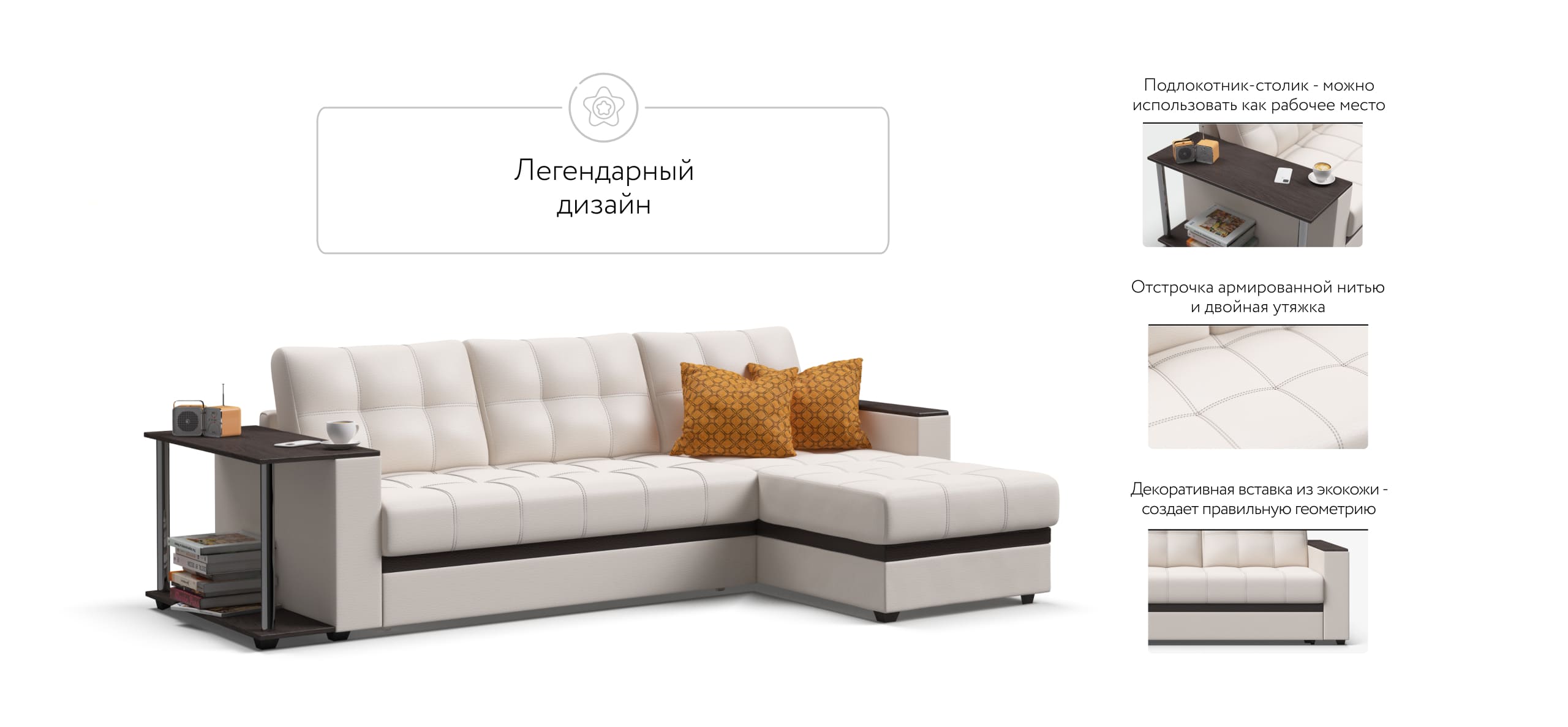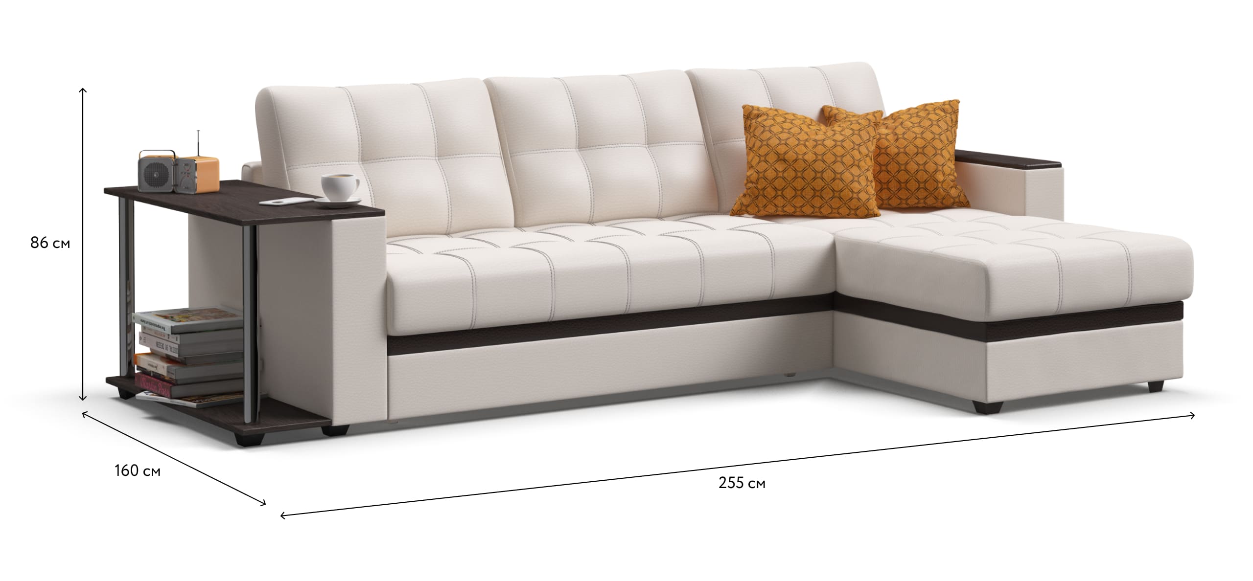 Угловой диван Атланта, благодаря своему элегантному и практичному дизайну, замечательно дополнит интерьер Вашей гостиной. Надежный и простой механизм трансформации дельфин идеален для постоянного использования и выдерживает большие нагрузки.