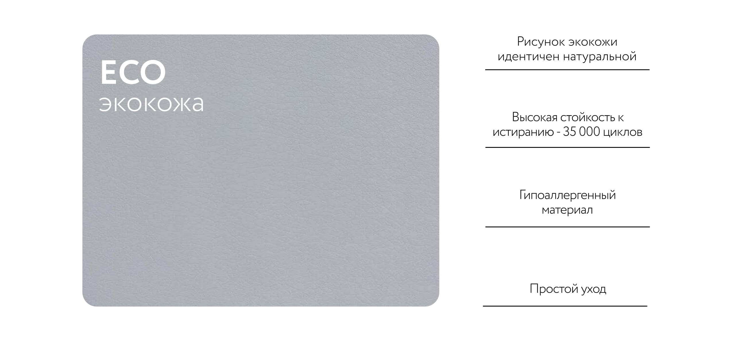 Диван выполнен в экокоже - это высокотехнологичный современный материал, продукт нового поколения. Обивка сочетает в себе дизайн и эстетические свойства натуральной кожи, при этом сохраняет доступную цену. Специальное покрытие EASY CLEAN обеспечивает вам легкую чистку большинства бытовых загрязнений.