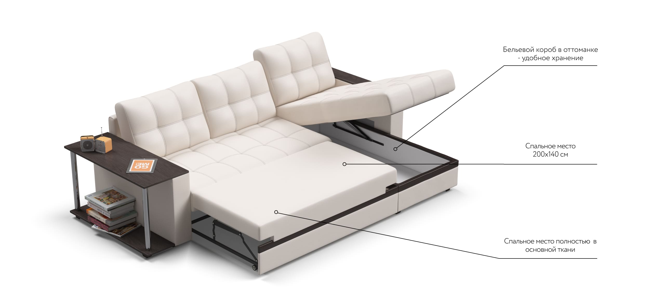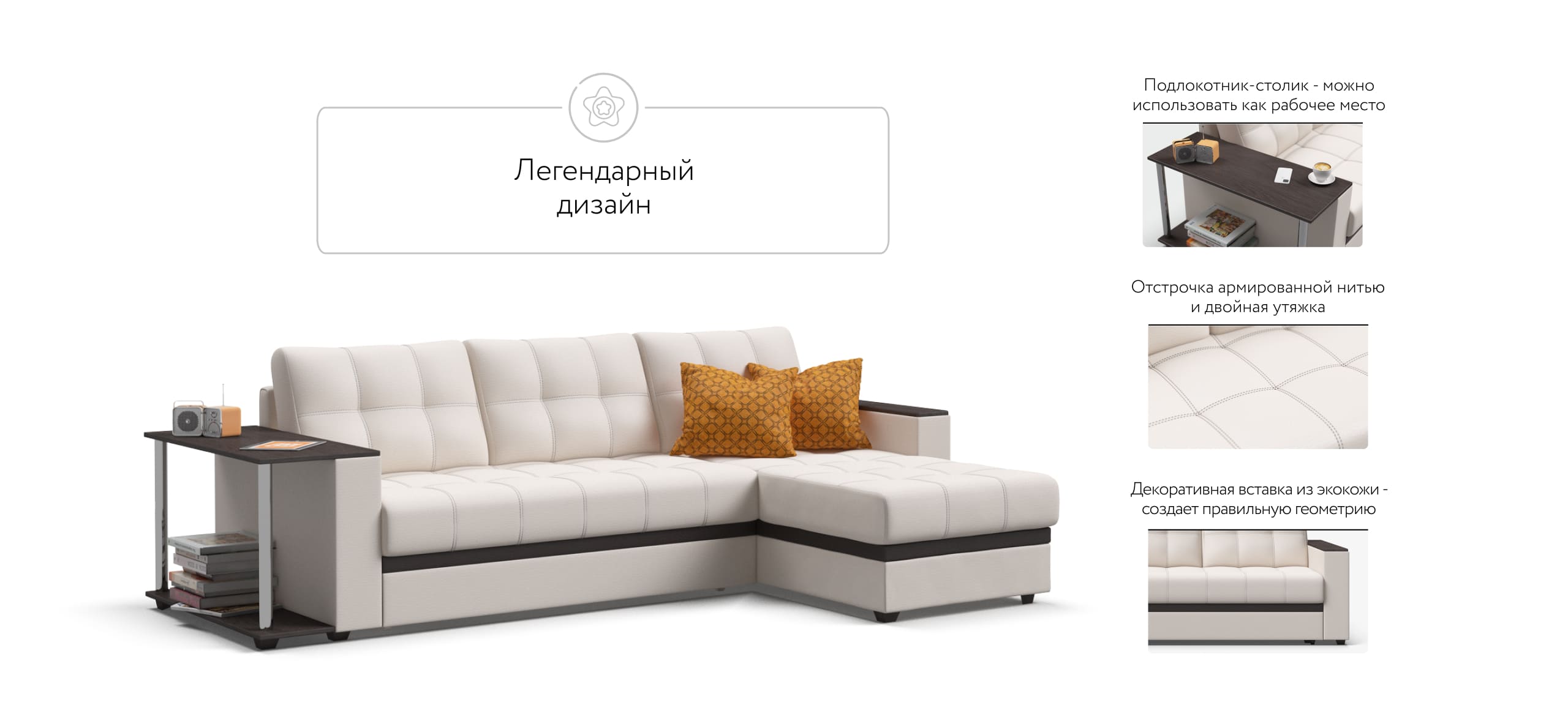 Декоративная строчка армированной нитью и двойная утяжка надолго сохранят внешний вид дивана.