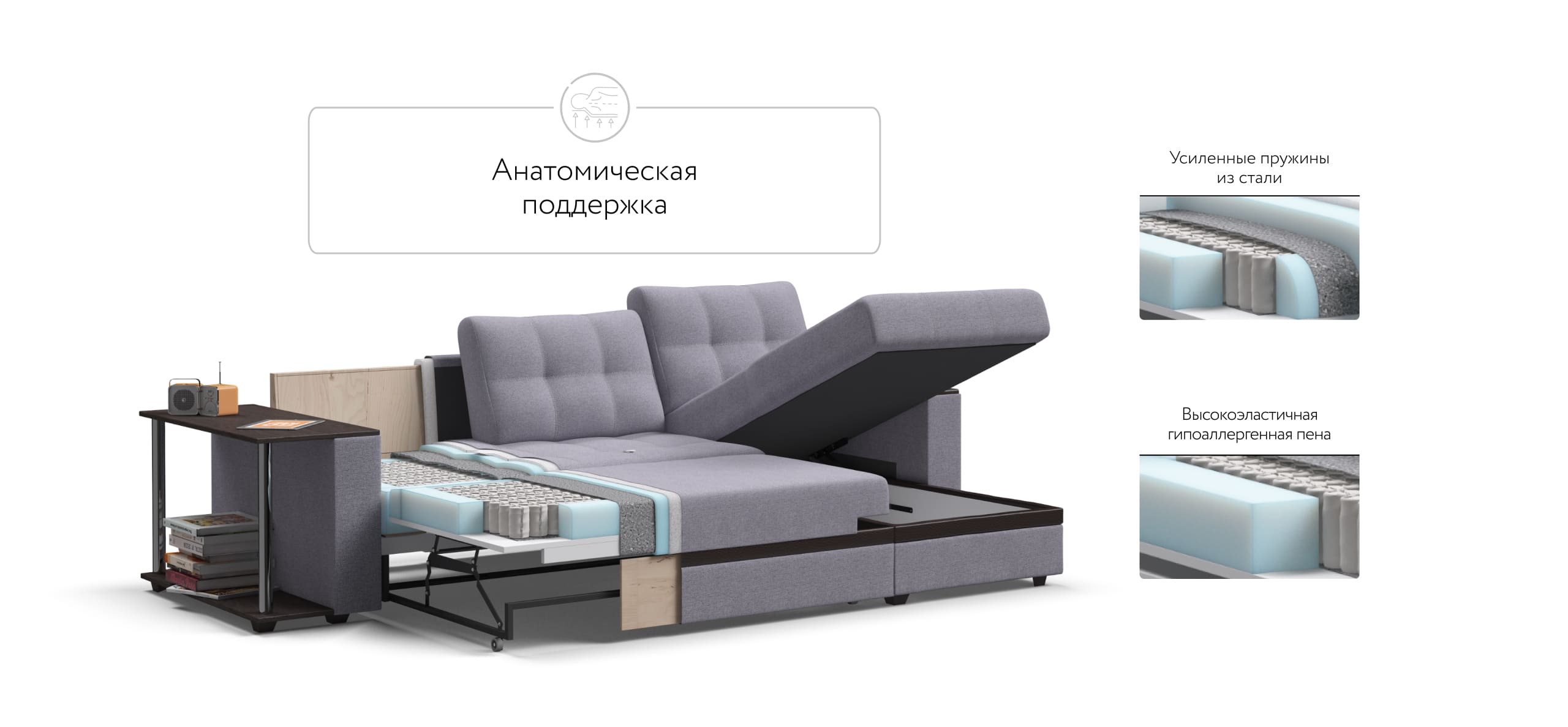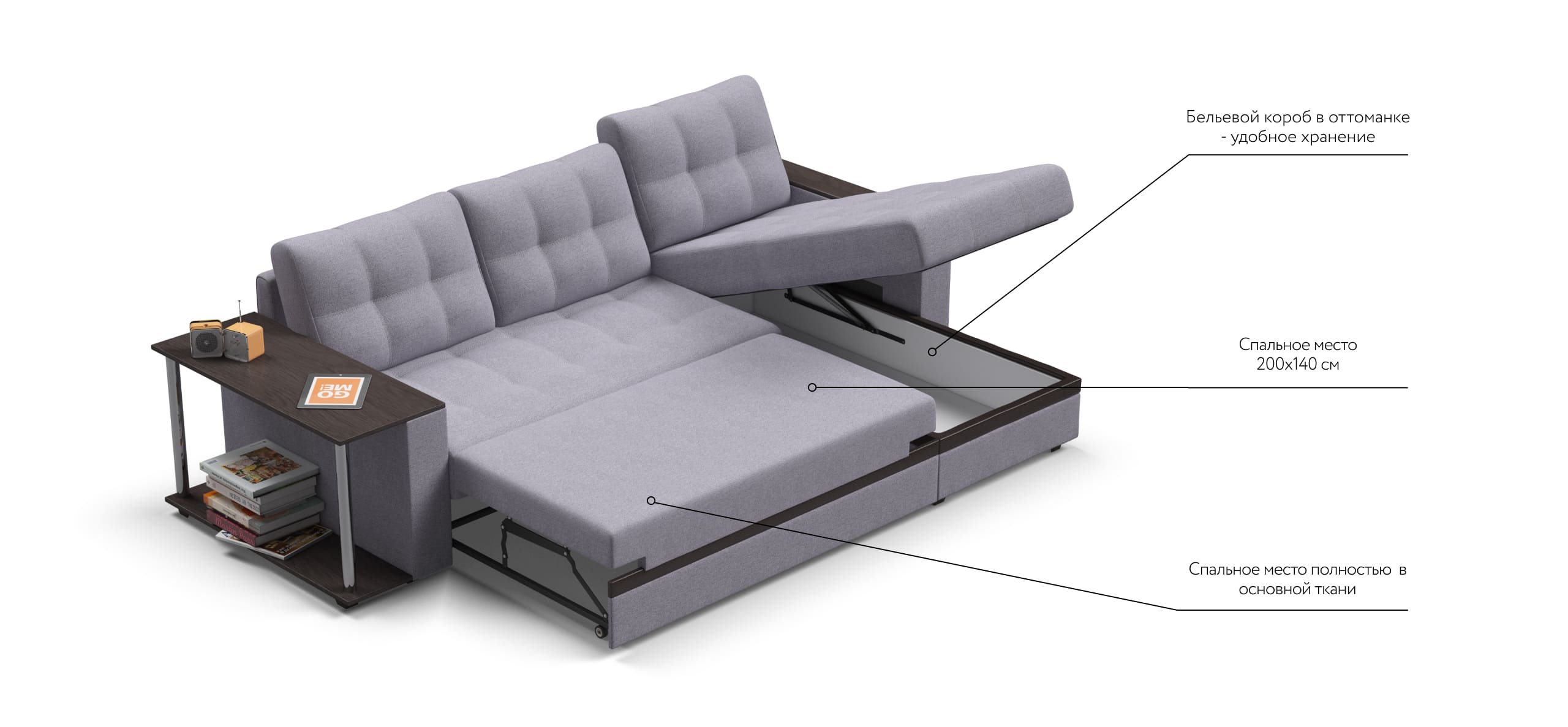 Угловой диван Атланта, благодаря своему элегантному и практичному дизайну, замечательно дополнит интерьер Вашей гостиной. Надежный и простой механизм трансформации Дельфин идеален для постоянного использования и выдерживает большие нагрузки. Модель оснащена прорезиненными колесиками, что обеспечит вам легкость раскладки и обезопасит от повреждений напольное покрытие.