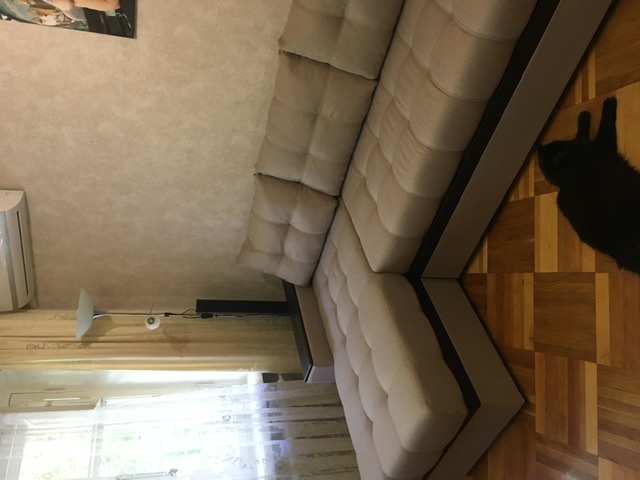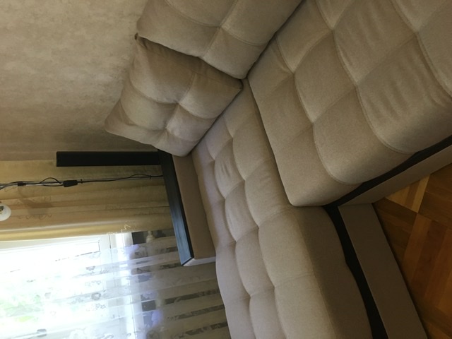 Выкатная часть выполнена на независимом пружинном блоке, обивка в основной ткани. Задняя часть спинки дивана частично выполнена в технической ткани.