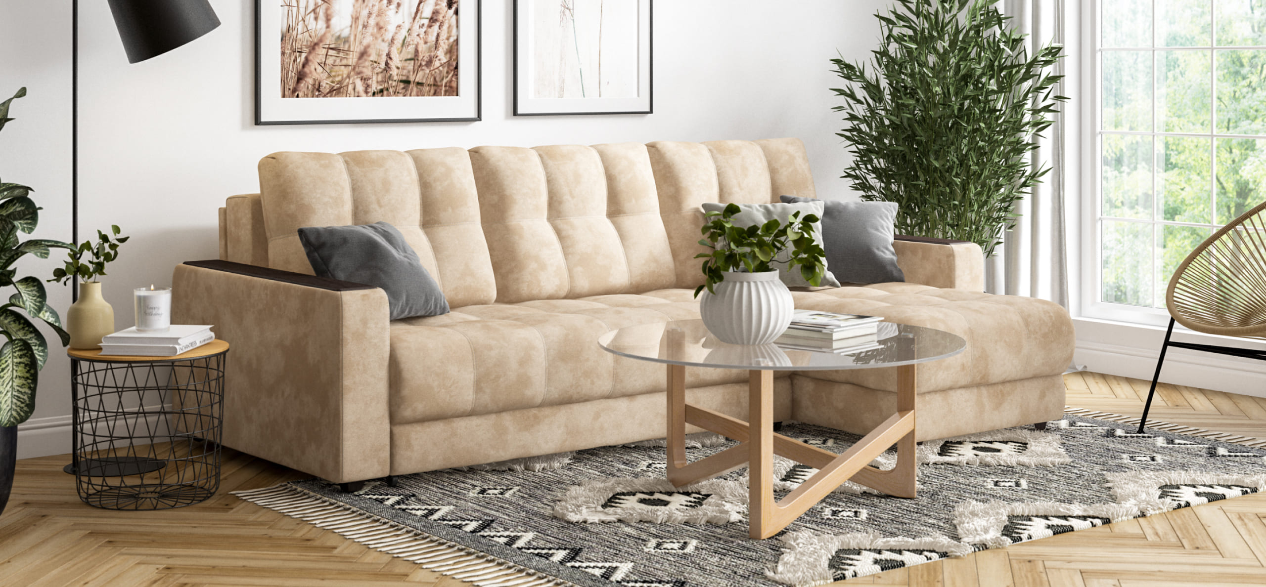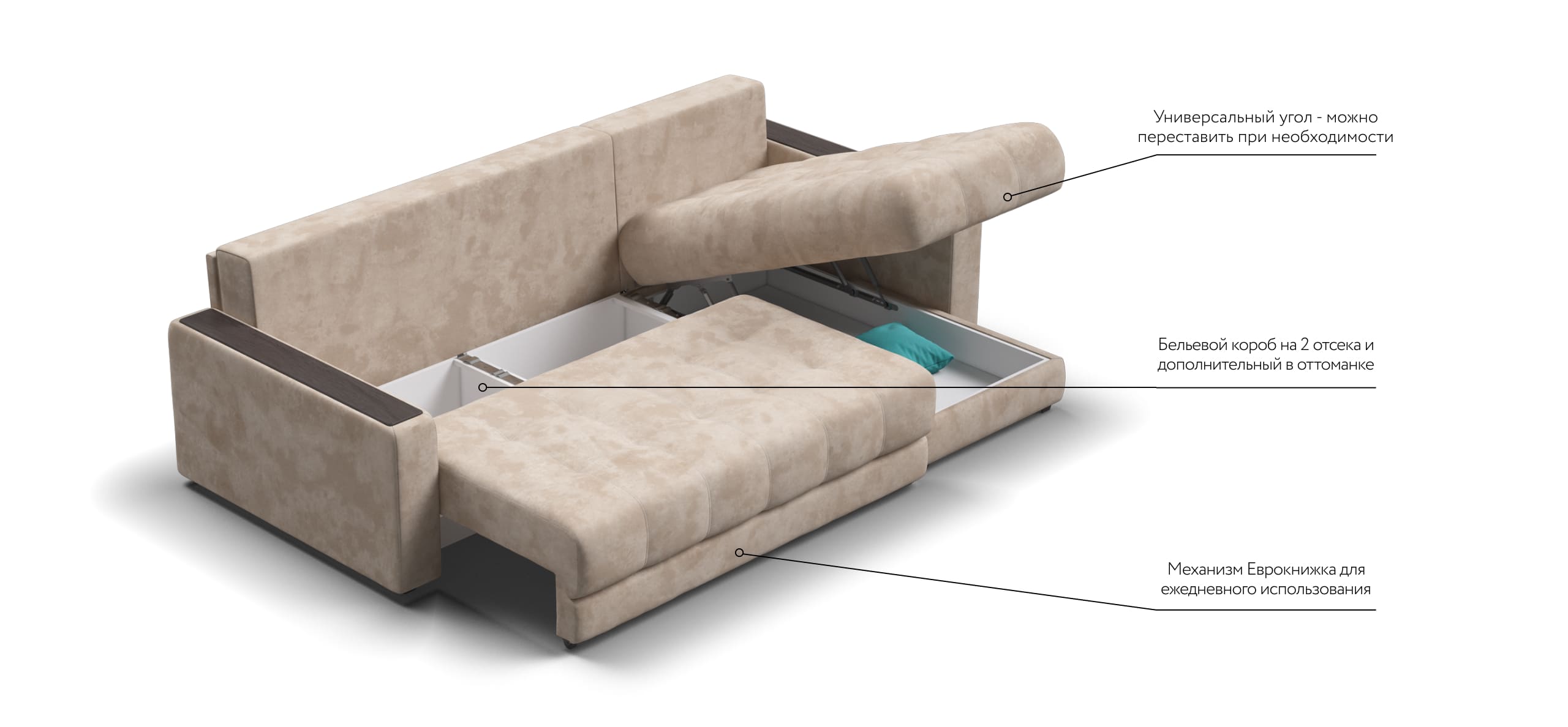 Угловой диван BOSS Classic XL - диван с подъемной оттоманкой и механизмом Еврокнижка.
