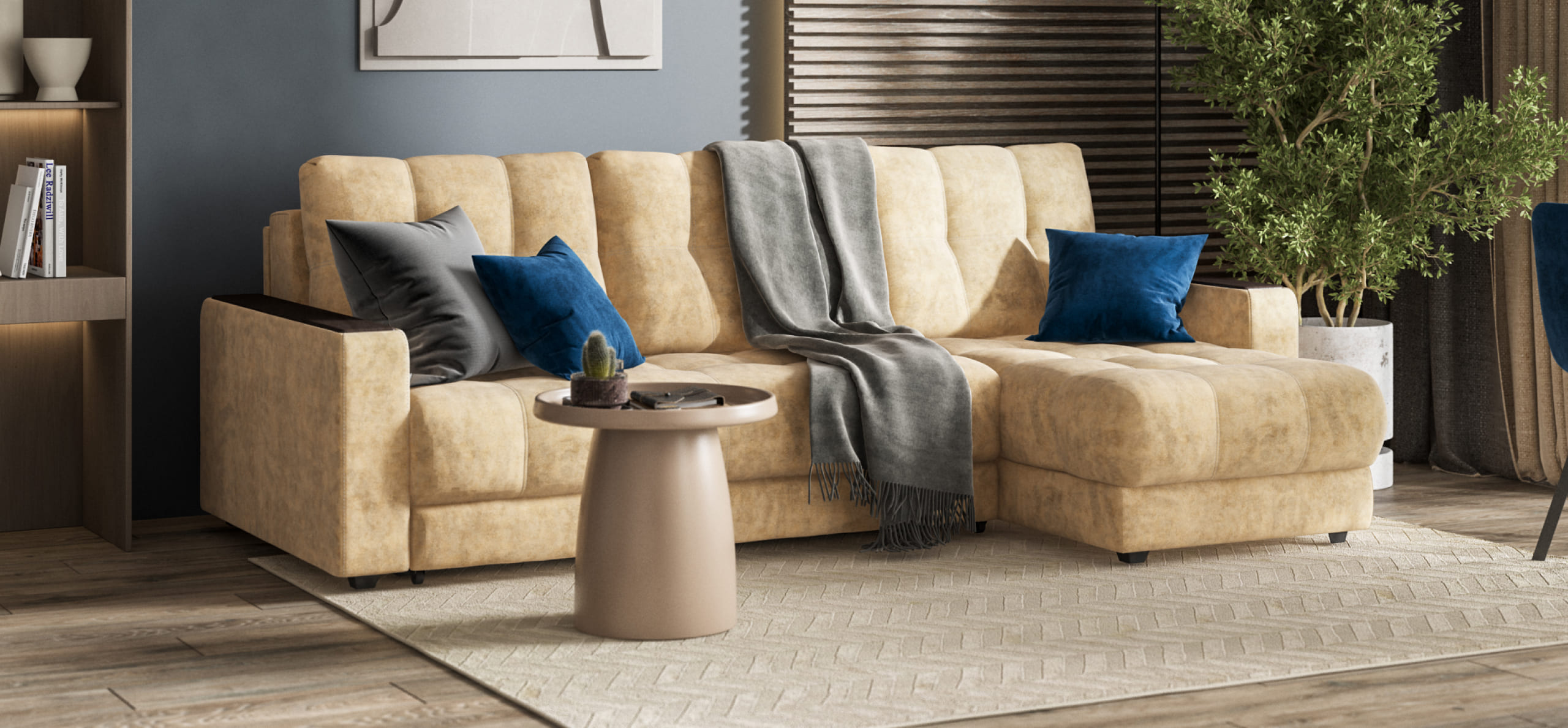 Угловой диван BOSS Classic XL - диван с подъемной оттоманкой и механизмом Еврокнижка.
