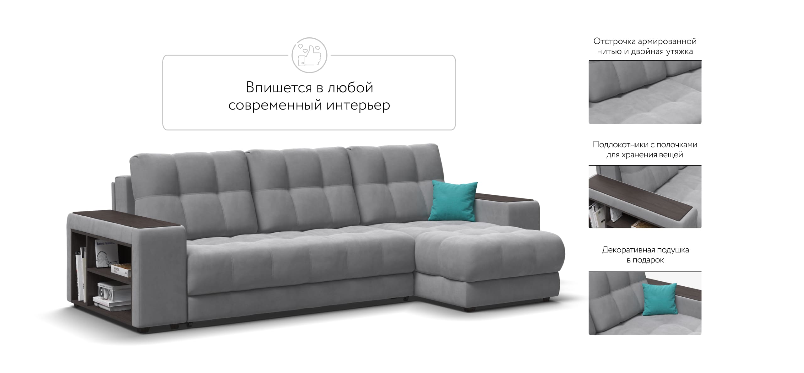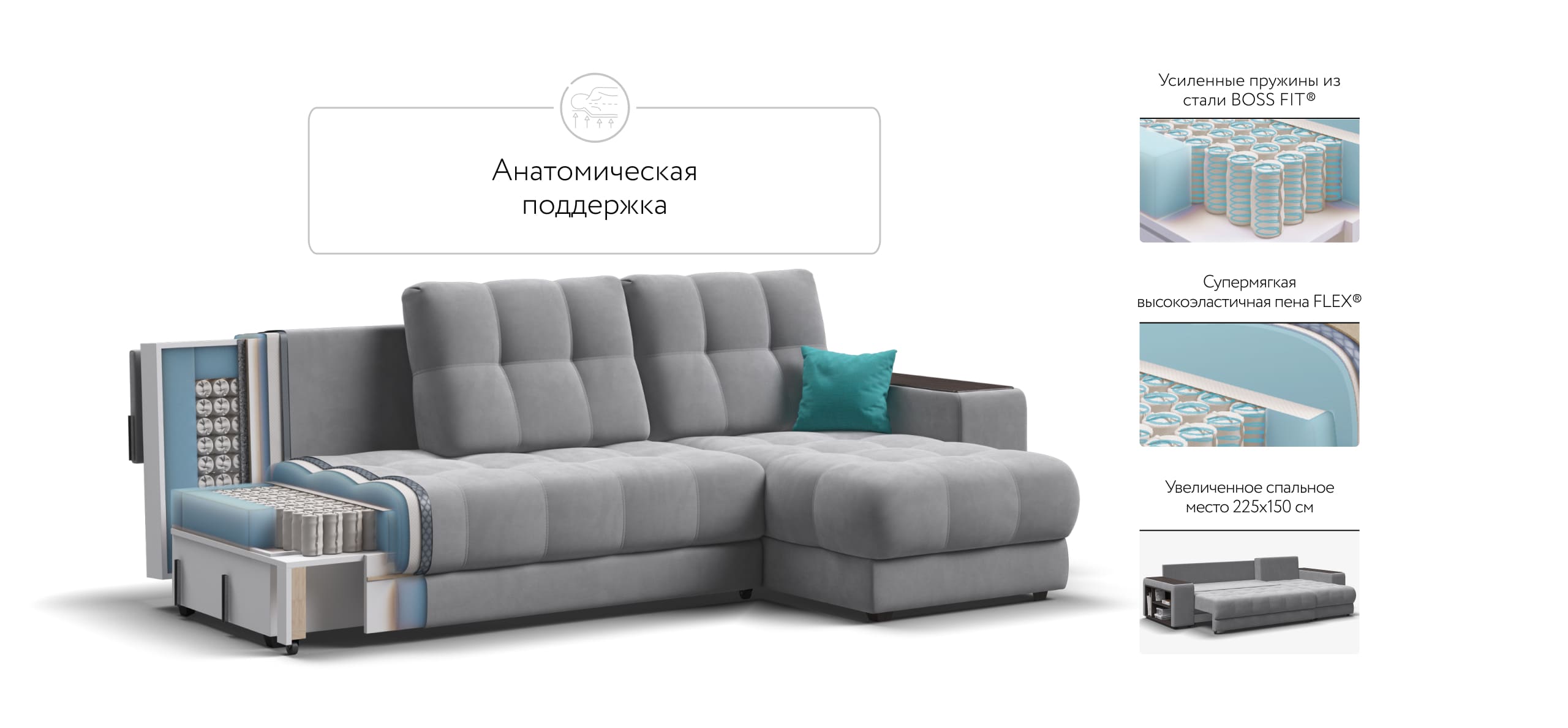 Продуманный до мелочей диван BOSS сочетает в себе функциональный подлокотник, мягкие ткани, надежный каркас, качественное наполнение матраса и быструю сборку за 1 минуту без инструментов - ощутите комфорт у себя дома!