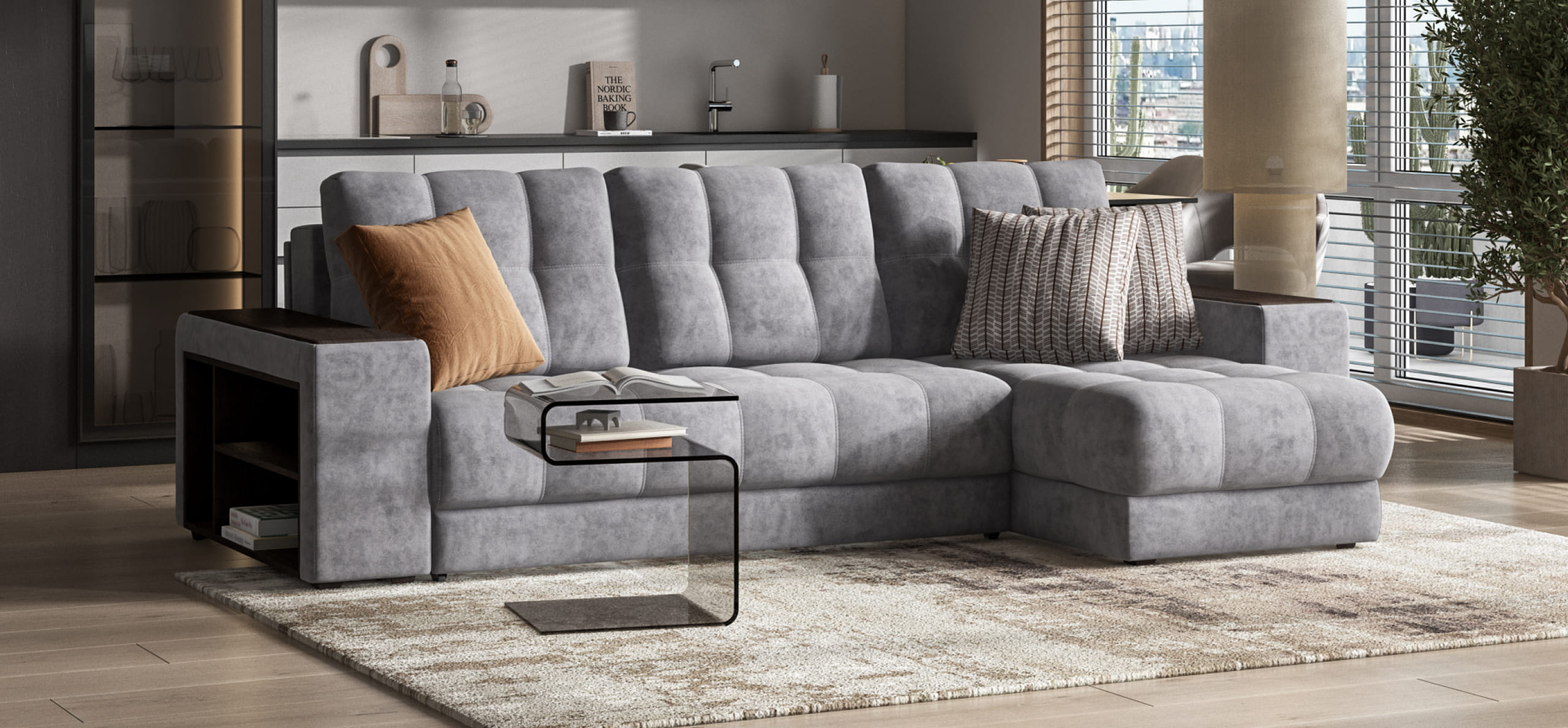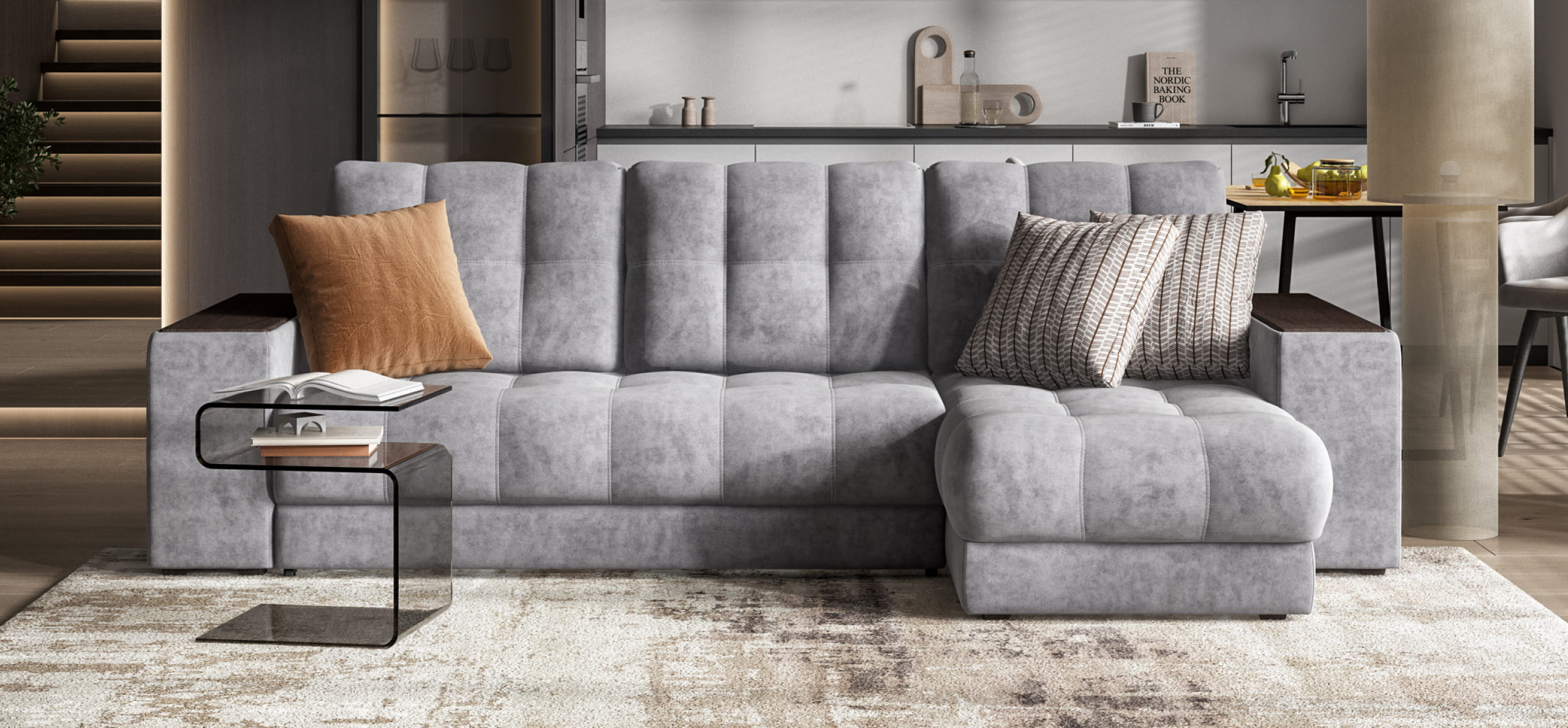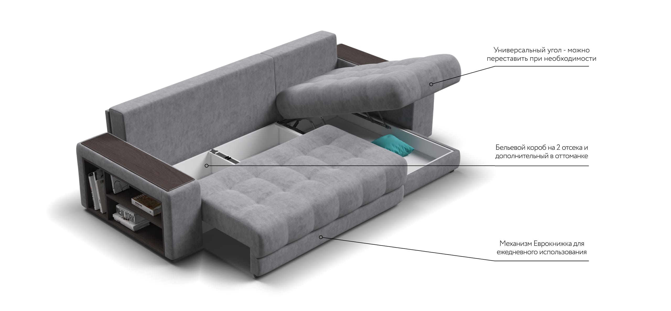 Угловой диван BOSS XL - диван с подъемной оттоманкой и механизмом Еврокнижка.