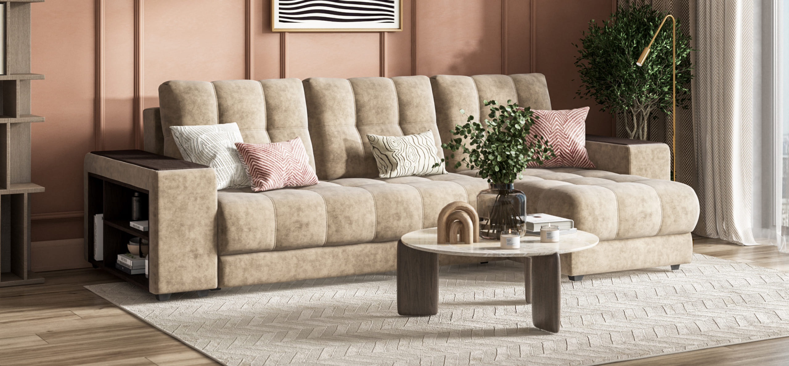 Продуманный до мелочей диван BOSS сочетает в себе функциональный подлокотник, мягкие ткани, надежный каркас, качественное наполнение матраса и быструю сборку за 1 минуту без инструментов - ощутите комфорт у себя дома!