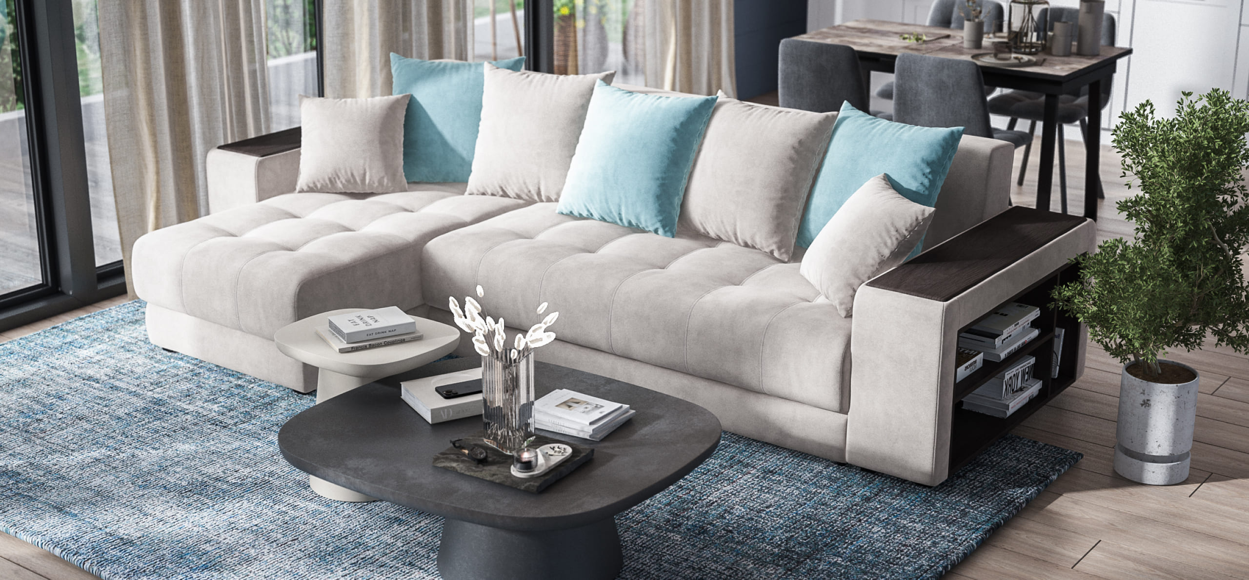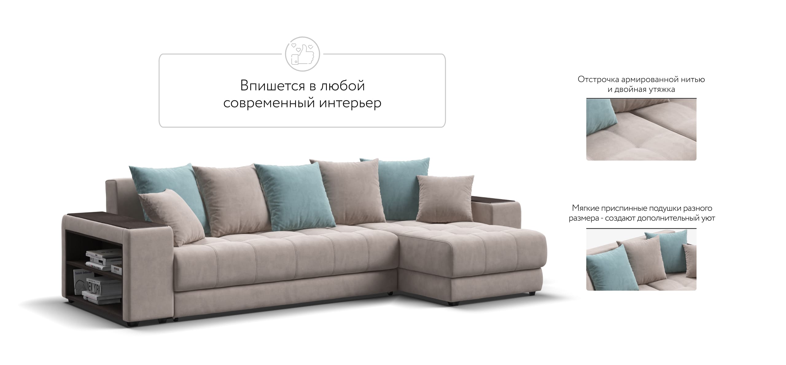 Просторный и очень удобный угловой диван Дубай станет стильным акцентом в Вашей гостиной и любимым местом для отдыха в кругу семьи и друзей. Его широкое сиденье и мягкие подушки с комфортом разместят даже большую компанию.