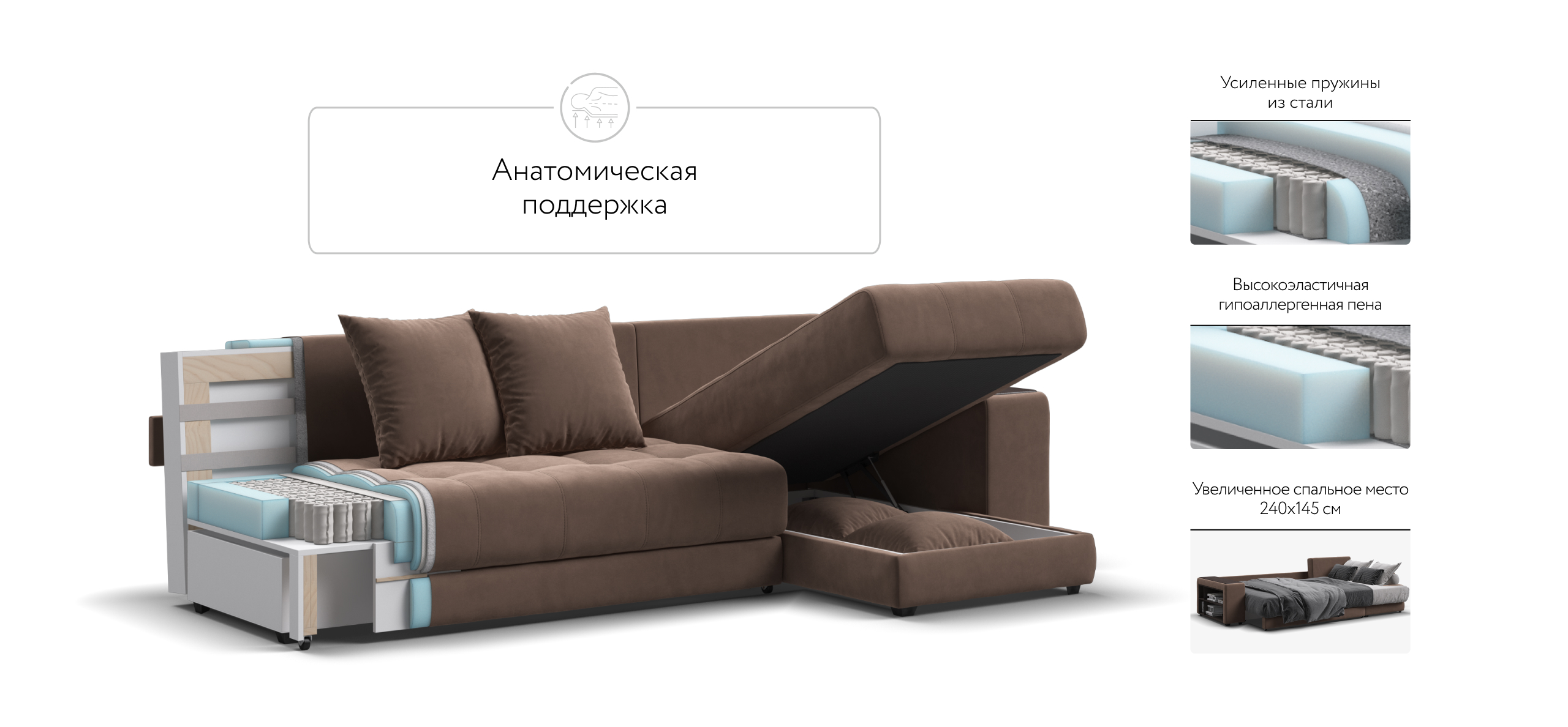 Надежный механизм трансформации еврокнижка сделает Дубай достойной альтернативой традиционной кровати. В основании дивана размещены большие и удобные бельевые ящики.