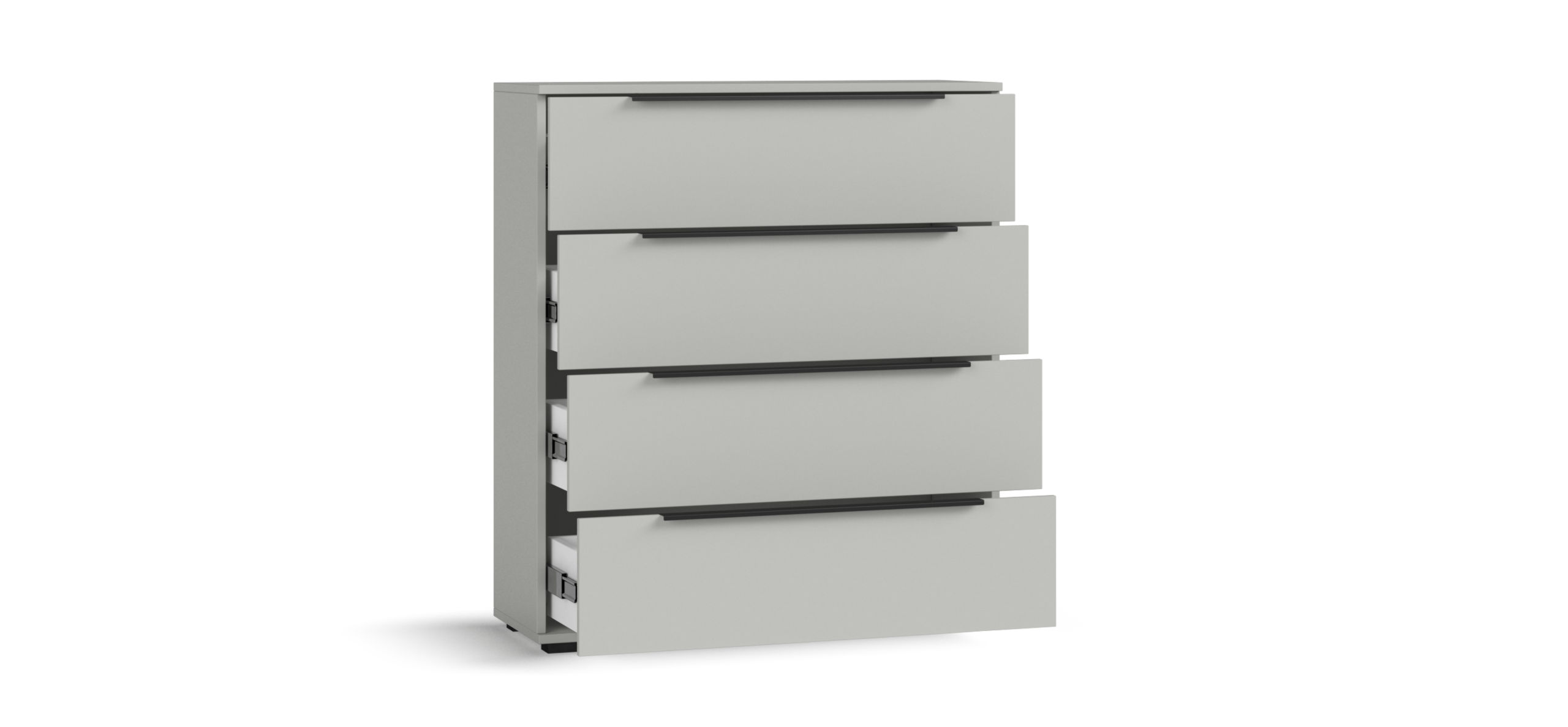 Трендовые оттенки Шиншилла серая и Кашемир серый будут выглядеть уместно в любом интерьере, а черная металлическая фурнитура добавляет стиля и вкуса этой коллекции. Мебель выглядит достойно, и подчеркивает изысканный вкус владельца.