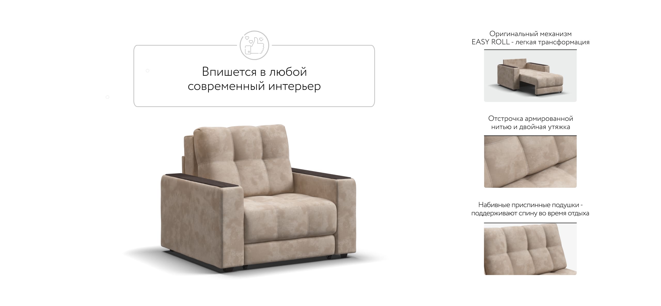 BOSS кресло-кровать – идеальное дополнение к диванам модельного ряда BOSS, отлично сочетает в себе две функции: подарит комфортный отдых днем и даст полноценное спальное место для гостя, который решил остаться у вас на ночь.