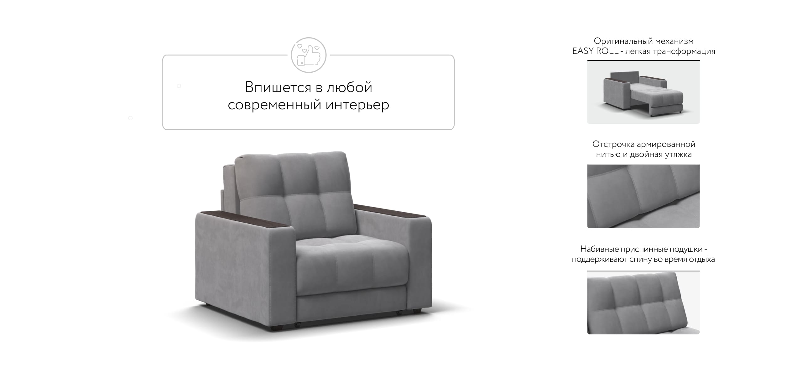 BOSS кресло-кровать – идеальное дополнение к диванам модельного ряда BOSS, отлично сочетает в себе две функции: подарит комфортный отдых днем и даст полноценное спальное место для гостя, который решил остаться у вас на ночь.