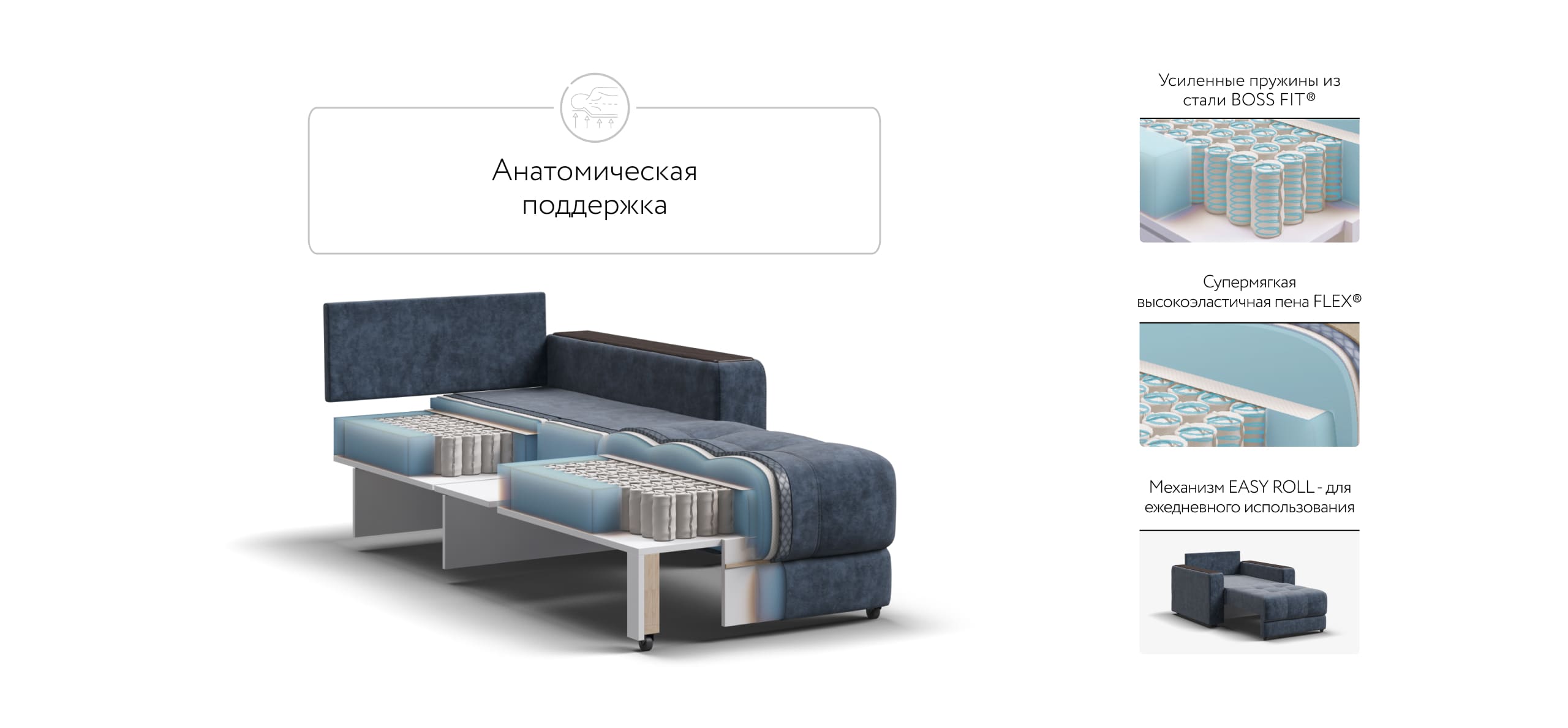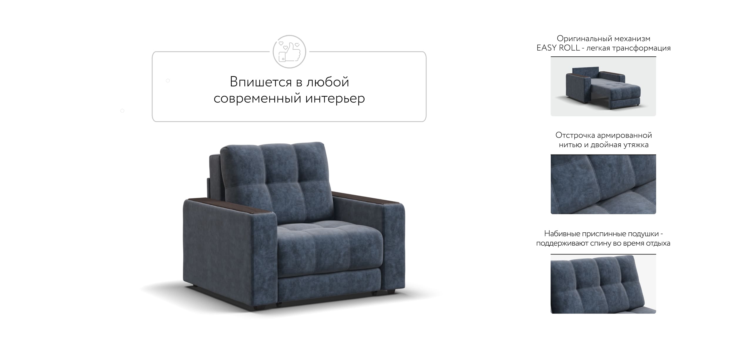 BOSS кресло-кровать – идеальное дополнение к диванам модельного ряда BOSS, отлично сочетает в себе две функции: подарит комфортный отдых днем и даст полноценное спальное место для гостя, который решил остаться у вас на ночь.