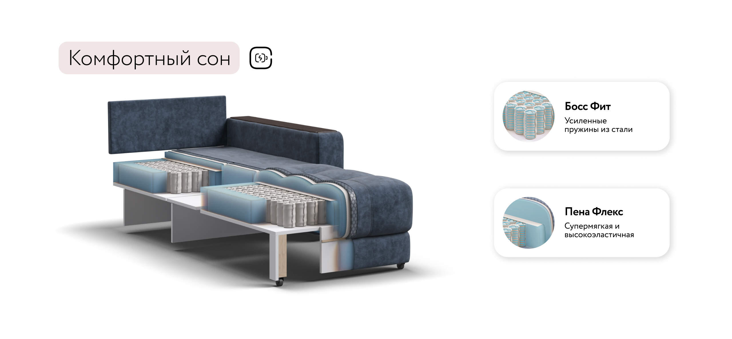 BOSS кресло-кровать – идеальное дополнение к диванам модельного ряда BOSS, отлично сочетает в себе две функции: подарит комфортный отдых днем и даст полноценное спальное место для гостя, который решил остаться у вас на ночь.