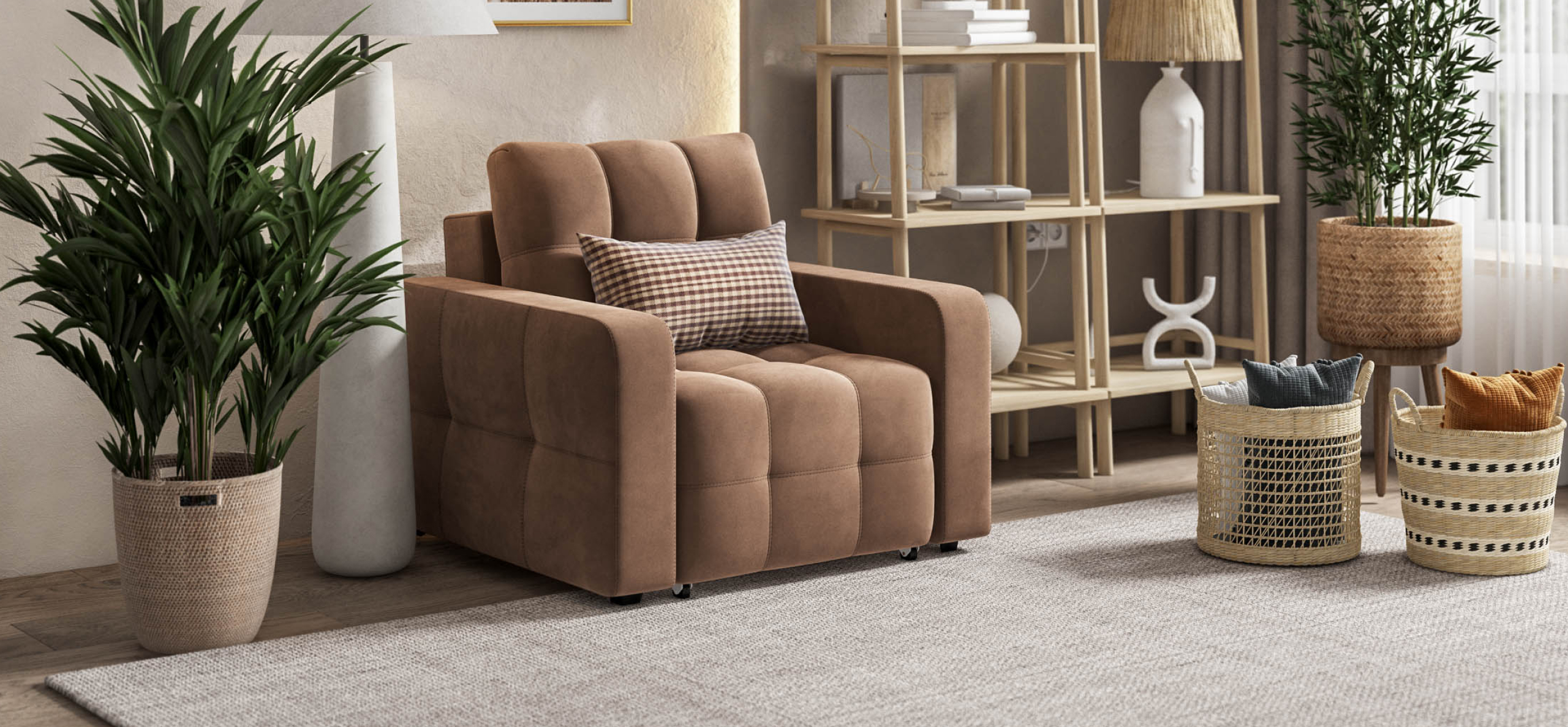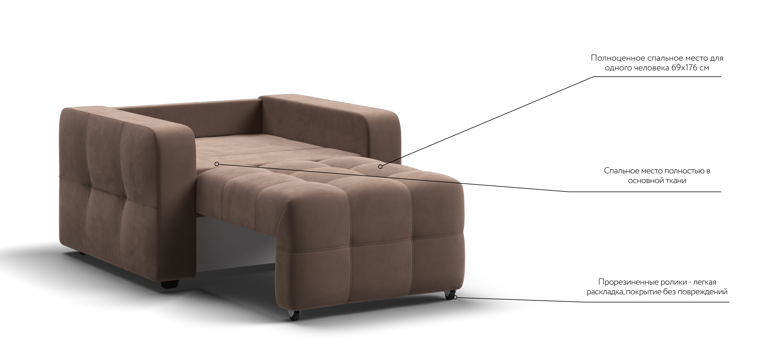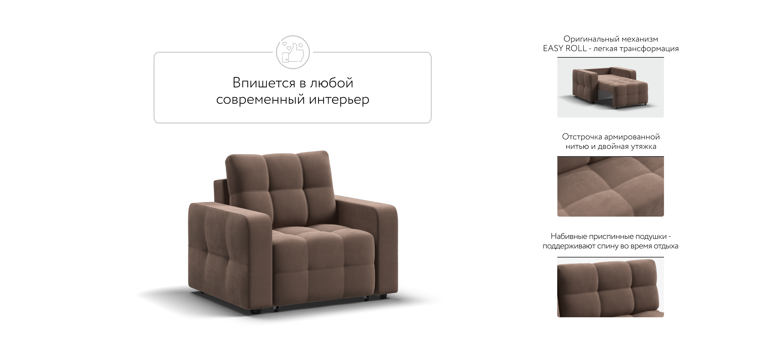 Dandy кресло-кровать с механизмом EASY-ROLL, которое отлично дополняет линейку диванов Dandy. Легким движением руки кресло раскладывается в удобную кровать.
