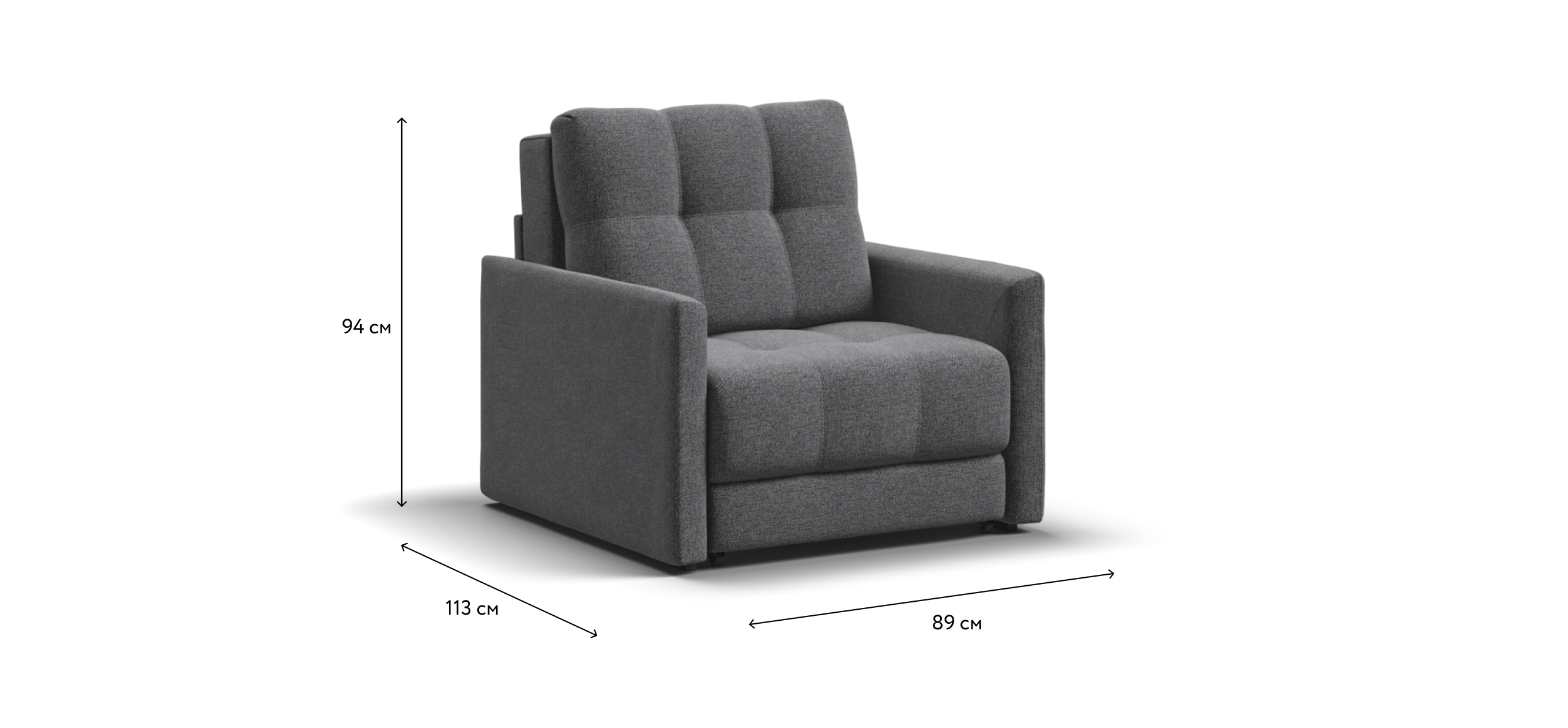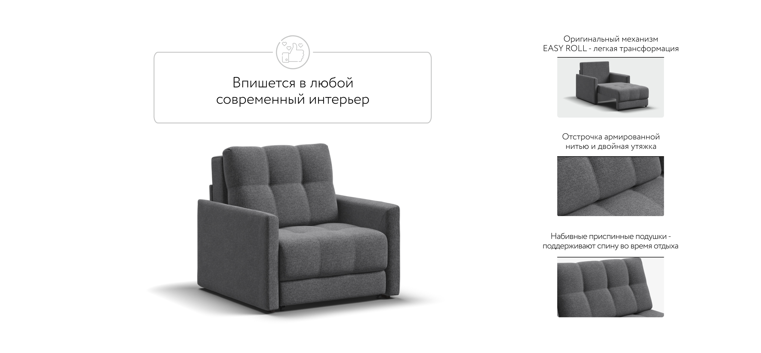 BOSS LOFT кресло-кровать - идеальное дополнение к дивану BOSS LOFT, отлично сочетает в себе две функции: подарит комфортный отдых днем и даст полноценное спальное место для гостя, который решил остаться у вас на ночь. Тонкие подлокотники идеальны для тех, кто ищет не классическое решение для своего интерьера.