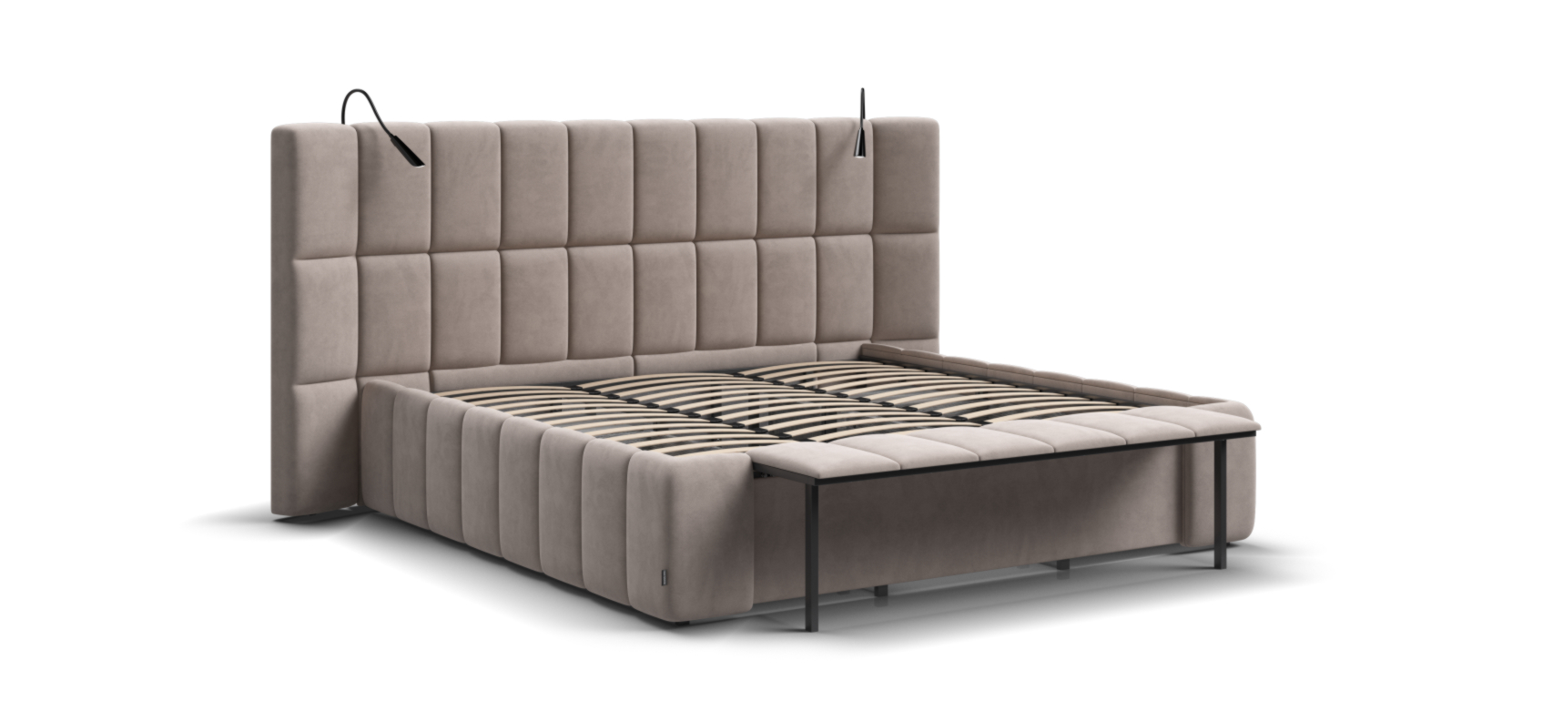Сделанно в России , Декларация соответствия , Гарантия 1 000 дней , Беспроцентная рассрочка , Улучшает экологию , Подарки при покупке , Современный дизайн , Анатомическое основание , Металлический каркас , Удобные ящики для белья , Встроенная банкетка , Выдвижные тумбы