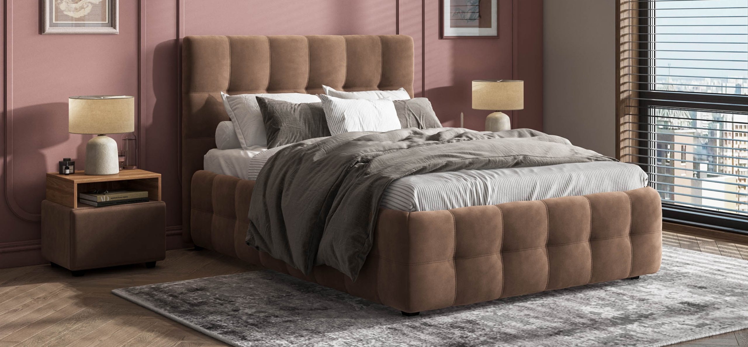 Кровать BOSS — это воплощение элегантности и минимализма. Её лаконичный дизайн, подчёркнутый мягким изголовьем с геометричным узором, делает эту кровать центральным элементом любой спальни. Комфортные обивки создают неповторимое ощущение уюта и способствуют полноценному отдыху.