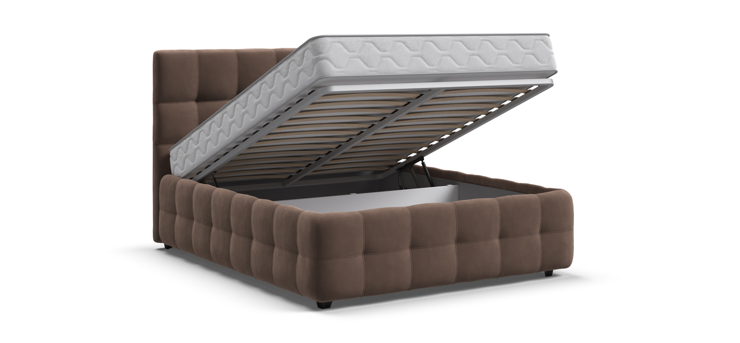 Особое внимание заслуживают газовые лифты SpaceLift, изготовленные из авиационного алюминия. Они обеспечивают лёгкое и плавное поднятие матраса, что делает доступ к отсеку для хранения быстрым и удобным. Дизайн 360 предполагает, что задняя часть спинки кровати также выполнена из основной ткани, что позволяет размещать кровать не только у стены, но и в центре комнаты, сохраняя при этом её эстетическую привлекательность.