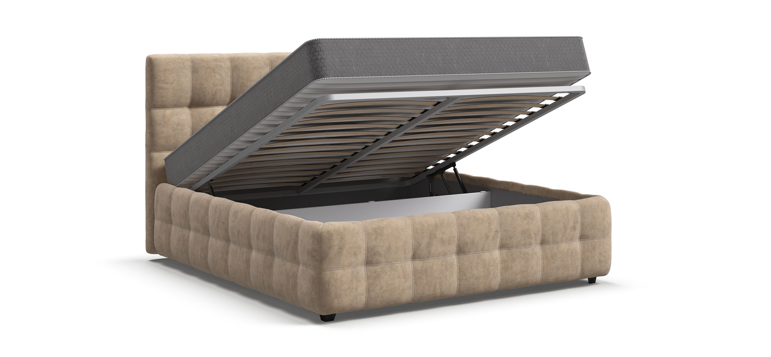 Особое внимание заслуживают газовые лифты SpaceLift, изготовленные из авиационного алюминия. Они обеспечивают лёгкое и плавное поднятие матраса, что делает доступ к отсеку для хранения быстрым и удобным. Дизайн 360 предполагает, что задняя часть спинки кровати также выполнена из основной ткани, что позволяет размещать кровать не только у стены, но и в центре комнаты, сохраняя при этом её эстетическую привлекательность.