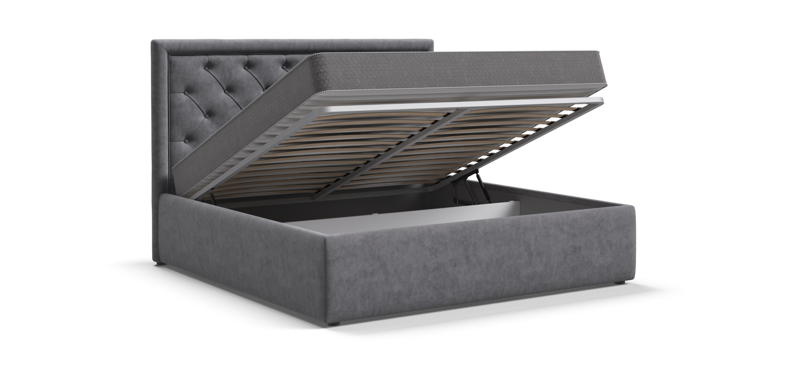 Обивка кровати выполнена из ткани, которая мягкая и приятная на ощупь, а также устойчива к истиранию, что обеспечивает долговечность и сохранение первозданного вида на протяжении долгих лет. Кровать оснащена двумя вместительными бельевыми ящиками, которые помогают эффективно организовать пространство спальни и сохранить порядок. Подъемный механизм SpaceLift из авиационного алюминия настолько легок в использовании, что с ним справится даже хрупкая девушка.