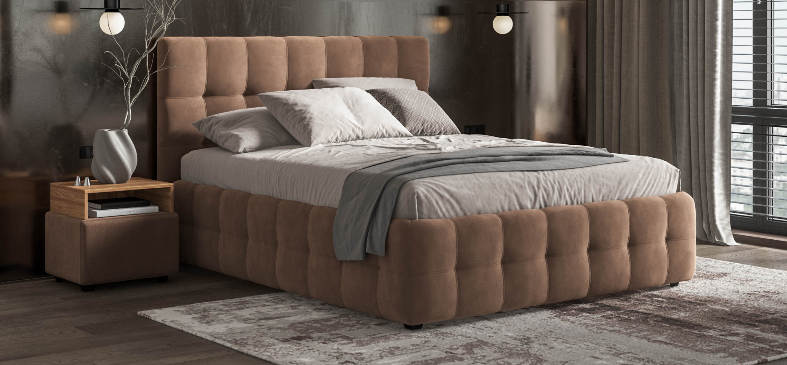 Кровать BOSS — это воплощение элегантности и минимализма. Её лаконичный дизайн, подчёркнутый мягким изголовьем с геометричным узором, делает эту кровать центральным элементом любой спальни. Комфортные обивки создают неповторимое ощущение уюта и способствуют полноценному отдыху.