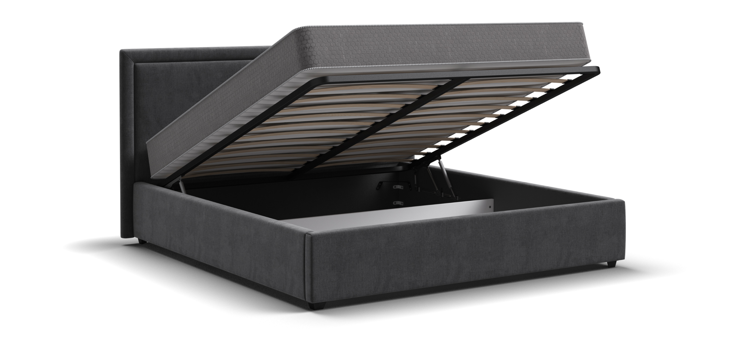 Под матрасом скрывается вместительное пространство для хранения, которое не выдает себя ни внешне, ни по звучанию — всё открывается легко и бесшумно. Это возможность освободить комнату от лишнего, сохранив только лёгкость и порядок вокруг.