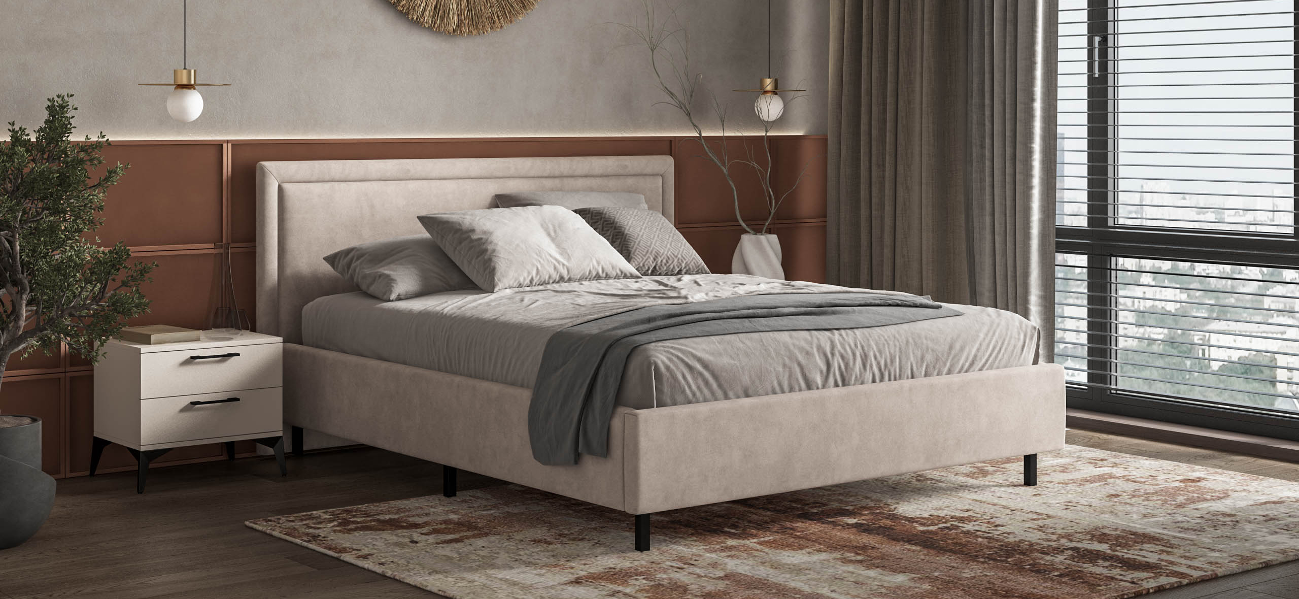 Эта кровать создана для тех, кто ценит тишину, уют и безупречный порядок в пространстве. Она будто обнимает вас мягкими линиями и ненавязчивым, благородным силуэтом. Высокое изголовье с деликатным объемом приглашает устроиться поудобнее — почитать книгу, посмотреть сериал или просто отдохнуть, ощущая приятную упругость за спиной.