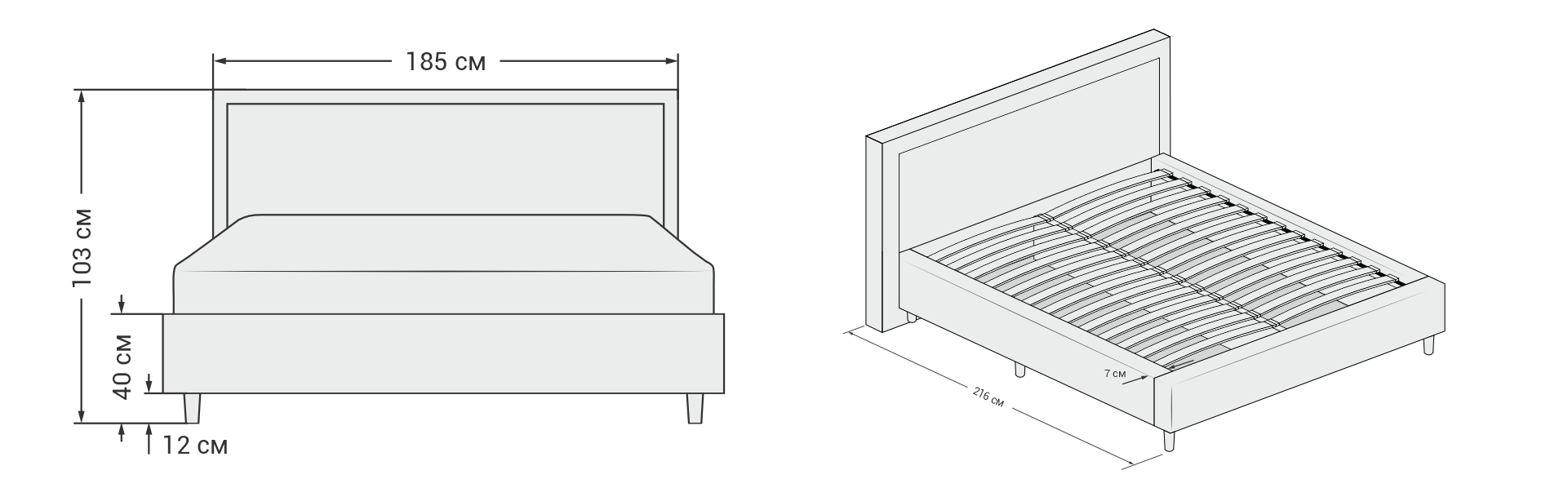 Высокое изголовье с наполнителем из формованной пены обеспечивает комфортную опору для спины, сохраняя упругость и форму на протяжении всего срока эксплуатации.