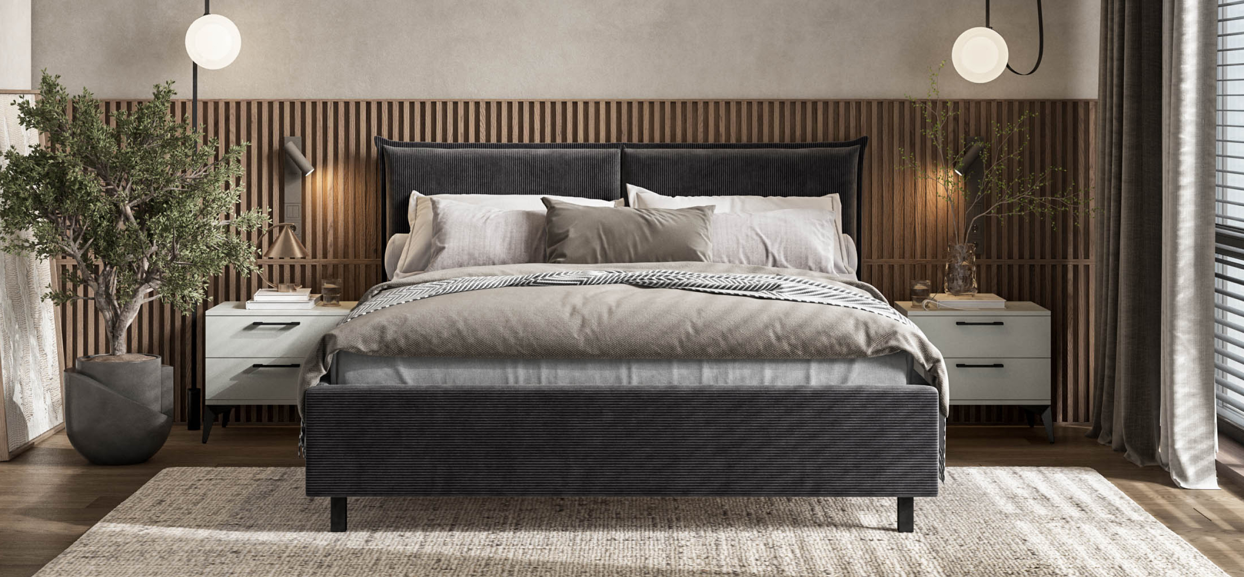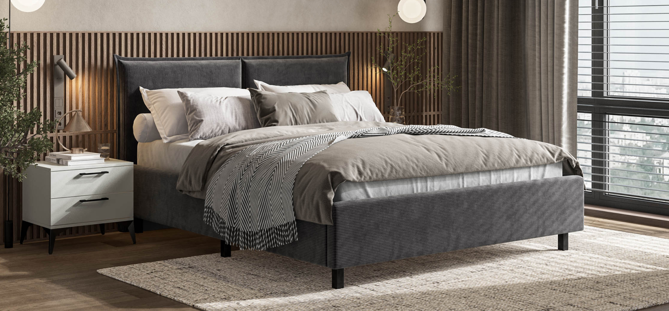 Мягкое изголовье и изысканный текстиль. Обивка из ультрамягкого вельвета CORD с бархатистой структурой создаёт уют и комфорт. Оптимальная ширина рубчика придаёт ткани стильный и современный вид, дополняя интерьер и делая отдых перед сном особенно приятным.