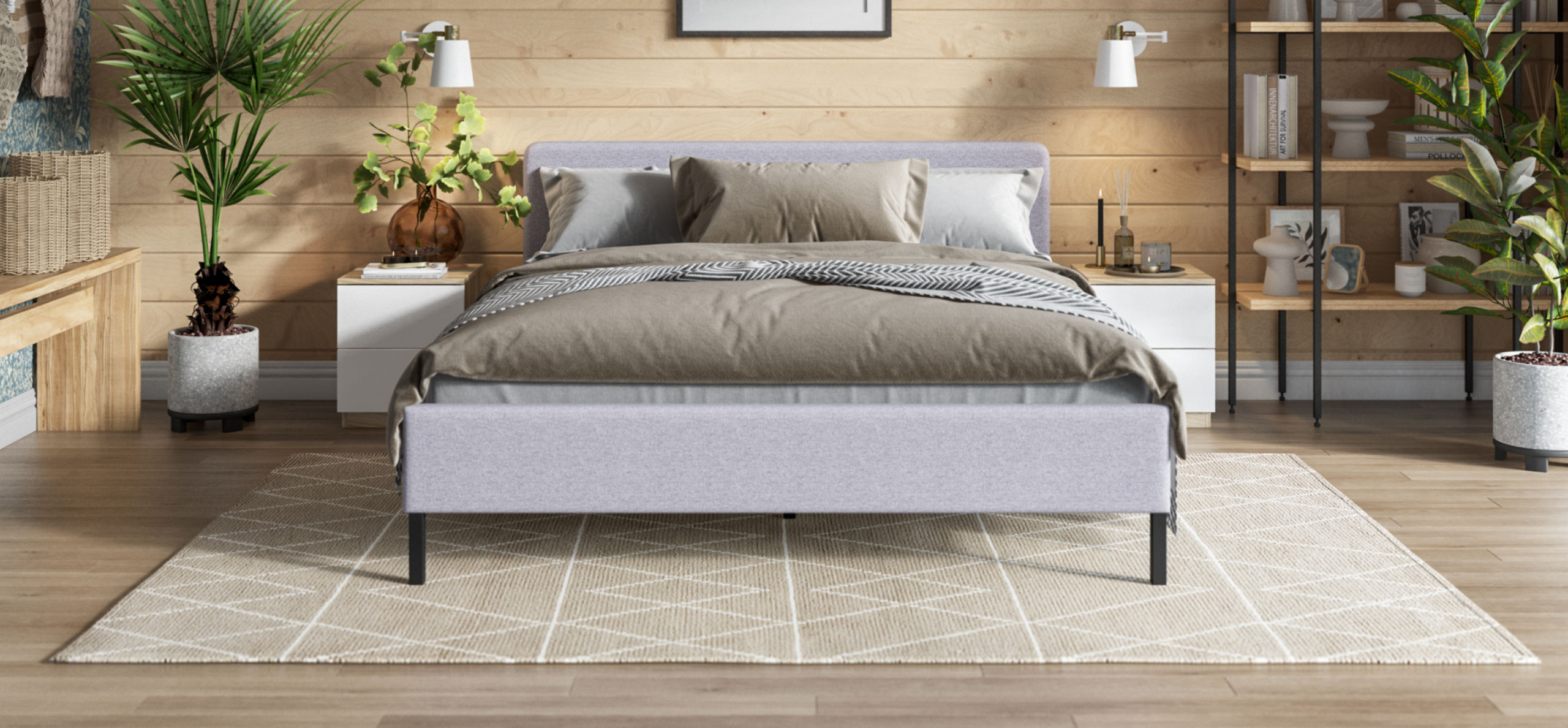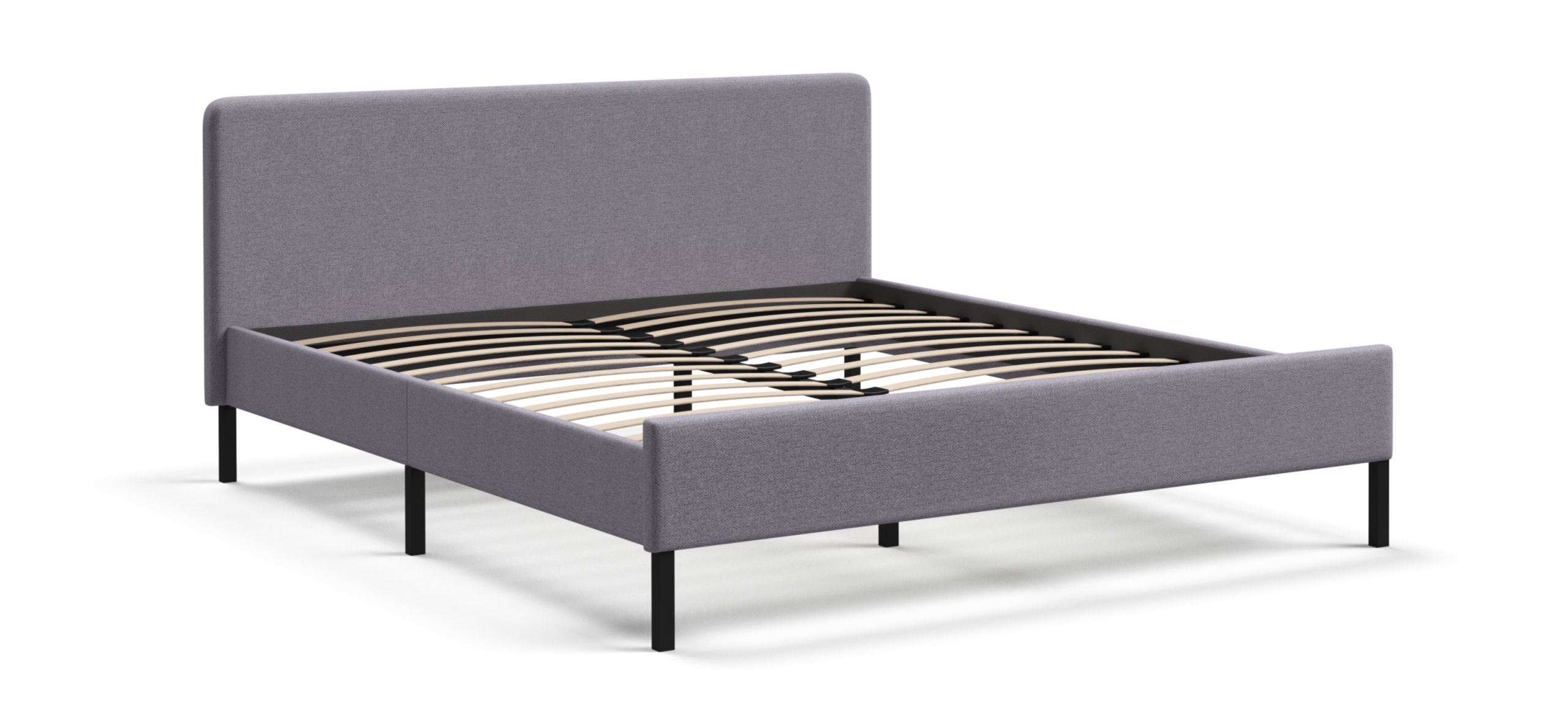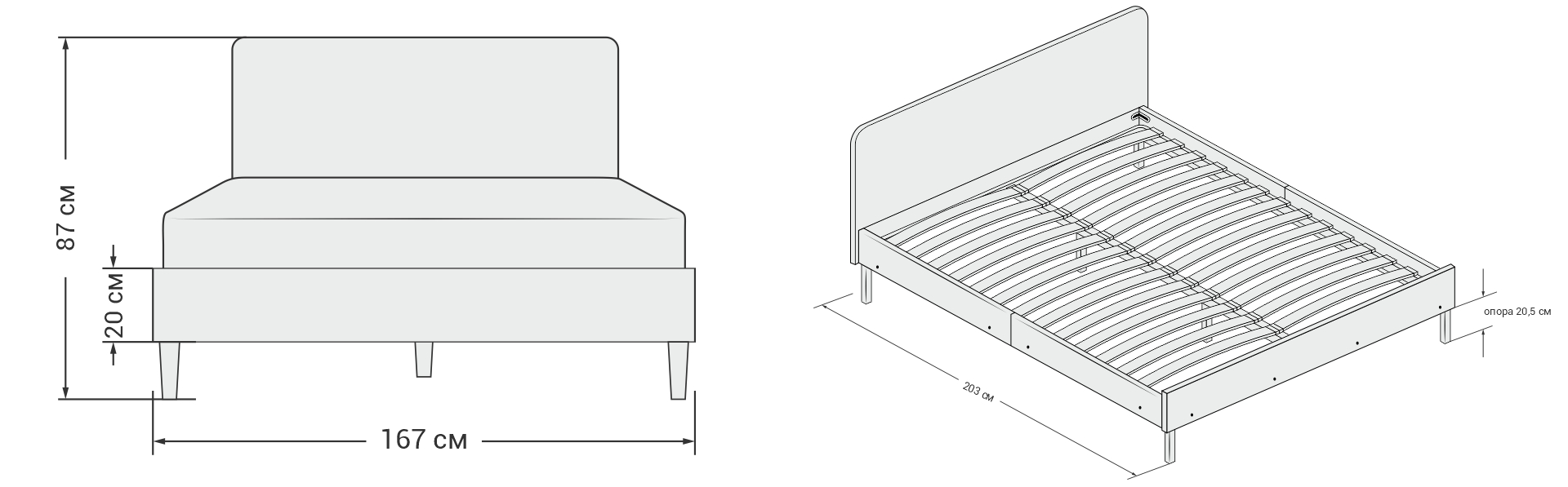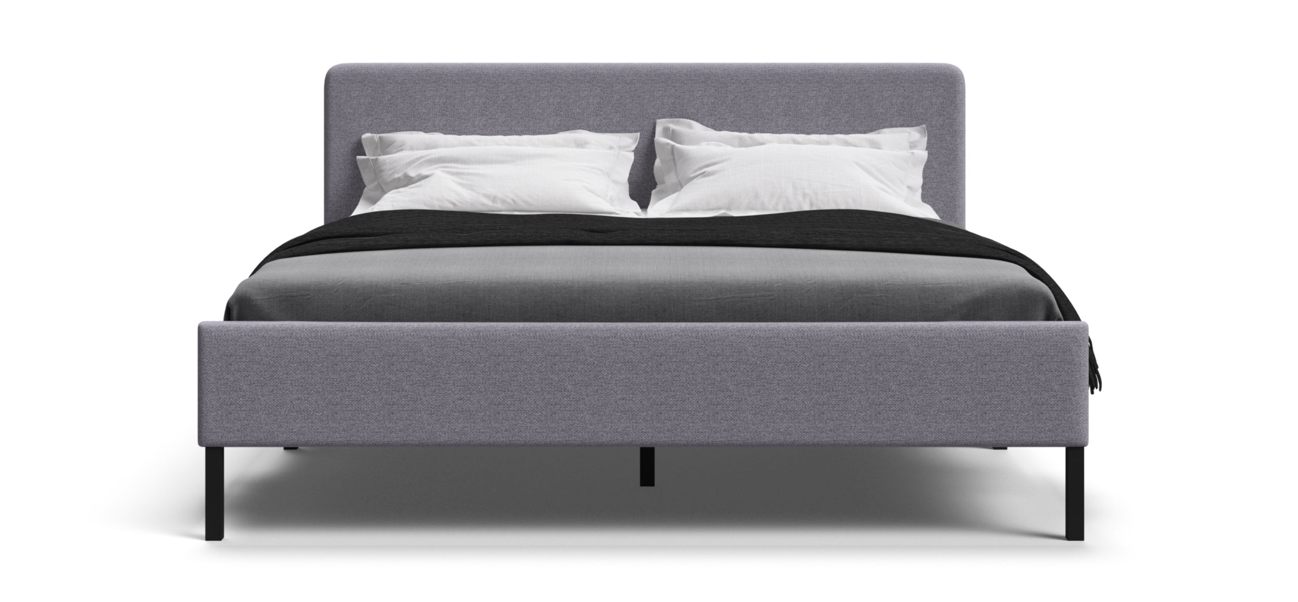 Кровать УНА в скандинавском стиле на высоких ножках прекрасно впишется в любой современный интерьер. Каркас кровати изготовлен из металлического профиля, позволяющего ей выдерживать большие нагрузки, и придающего ей долговечность. Кровать не ломается и не деформируется даже при интенсивной эксплуатации. Мягкая тканевая обивка придает кровати уютный вид. На изголовье можно удобно опереться, чтобы почитать перед сном. Пространство под кроватью можно без труда почистить пылесосом.