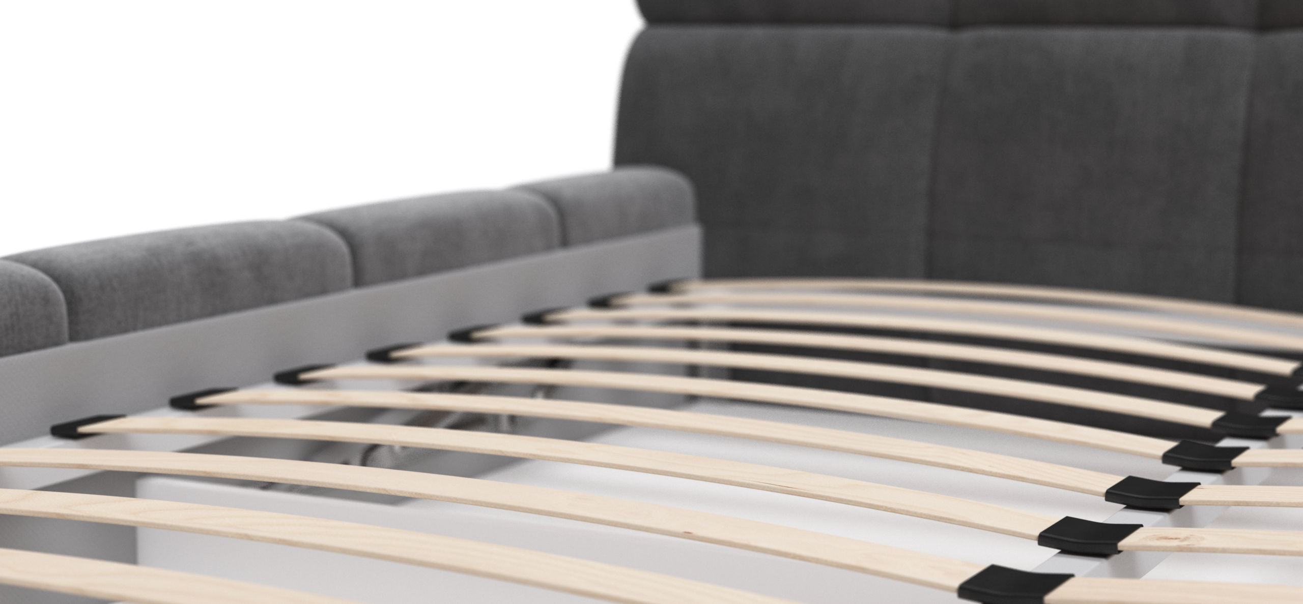 Усиленное ортопедическое основание из прочного металлического каркаса и березовых ламелей позволяют принять вам правильную позу во время сна.