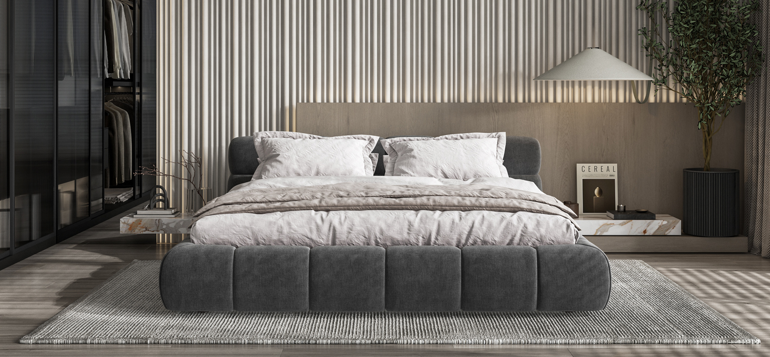 BOSS DREAM — это воплощение итальянского дизайна, известного своим вниманием к деталям и утонченным стилем. Пышные формы кровати и рельефное мягкое изголовье создают атмосферу роскоши и уюта, делая вашу спальню центром изысканности и элегантности. Каждая линия каркаса, четко продуманная и аккуратно выполненная, придает конструкции эффект пышности и мягкости.