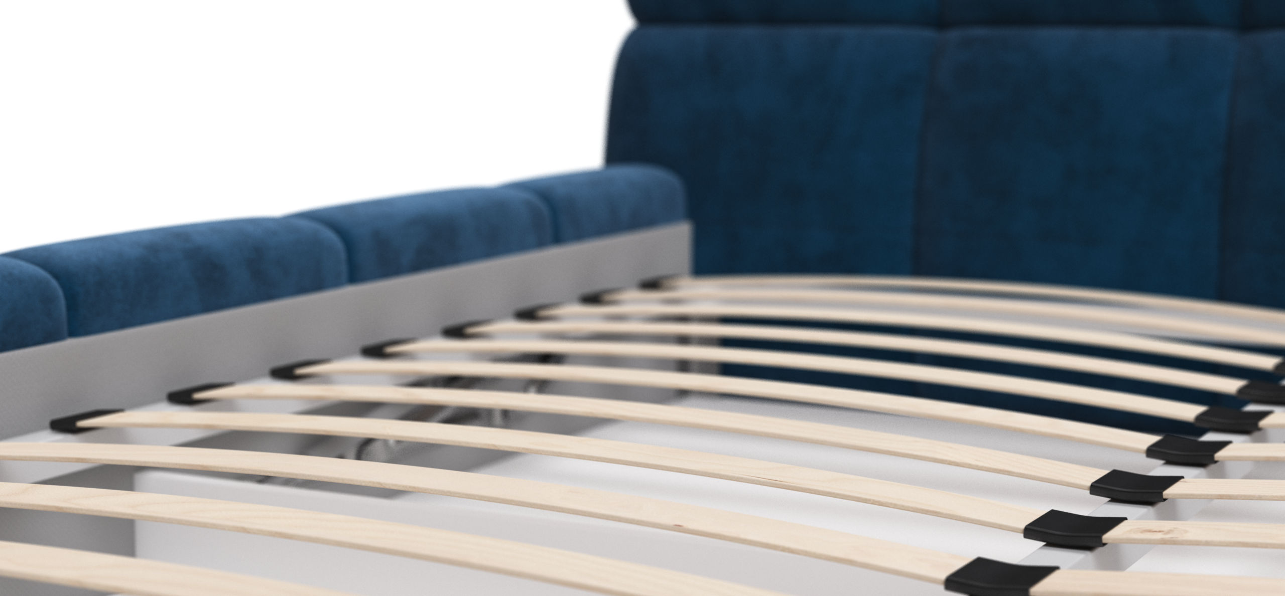Усиленное ортопедическое основание из прочного металлического каркаса и березовых ламелей позволяют принять вам правильную позу во время сна.