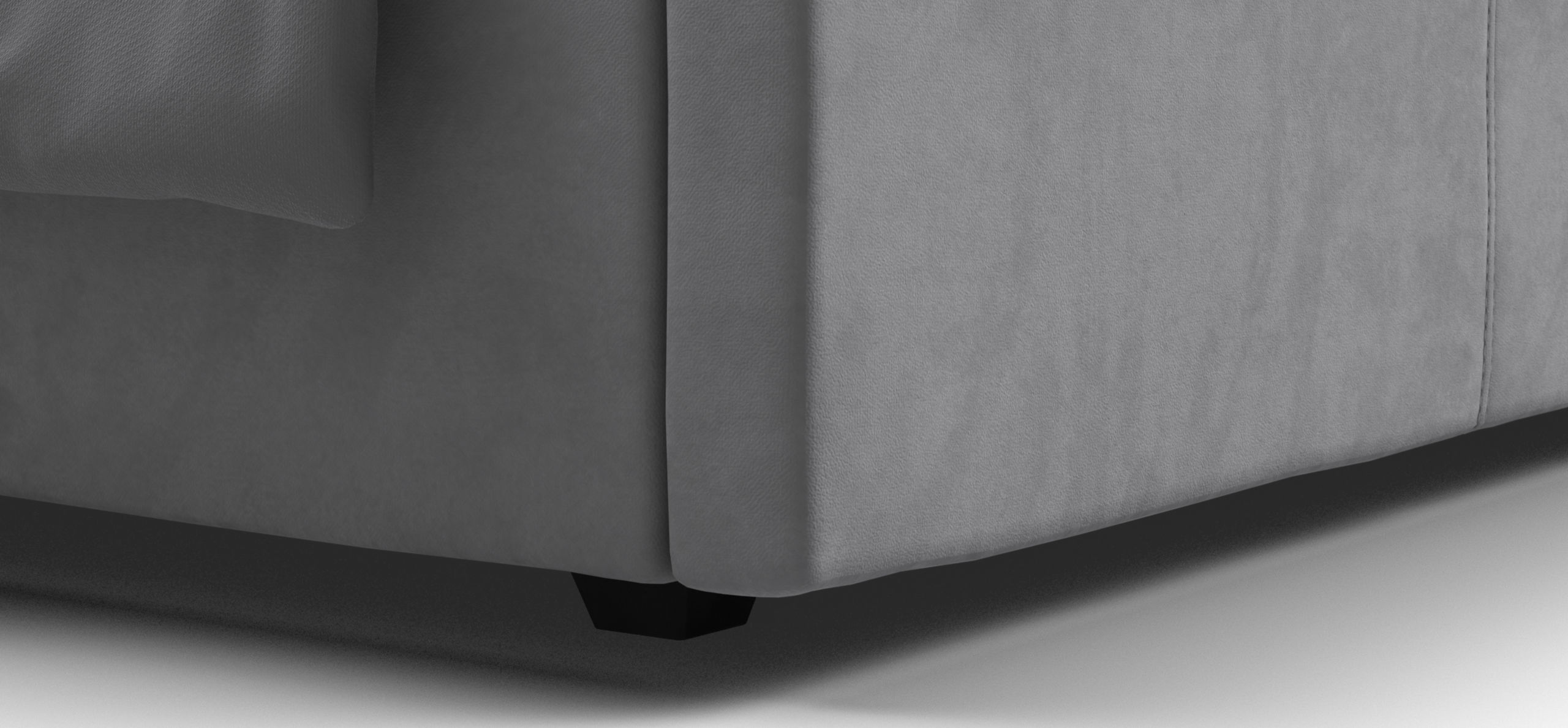Кровать оборудована декоративными ножками и мягкими углами, что не только придает ей стильный вид, но и обеспечивает безопасность, предотвращая возможные травмы от случайных ударов. Дополнительным преимуществом является наличие бельевого ящика с легко вынимаемым дном, что значительно упрощает процесс влажной уборки.