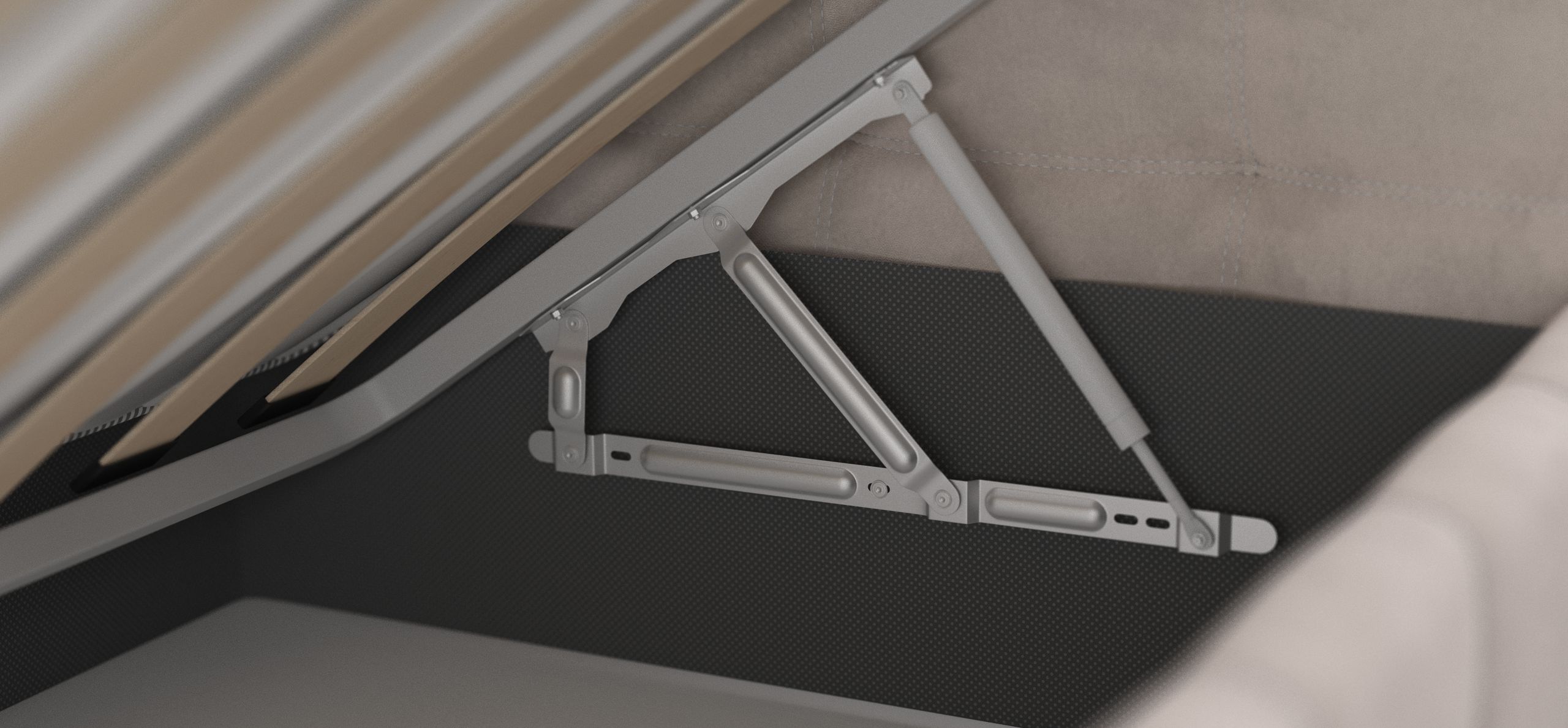 Кровать оснащена вместительным отсеком для хранения HideBox объемом 480 литров. Это позволяет удобно хранить постельное белье, игрушки или другие вещи, освобождая пространство в комнате и поддерживая порядок.