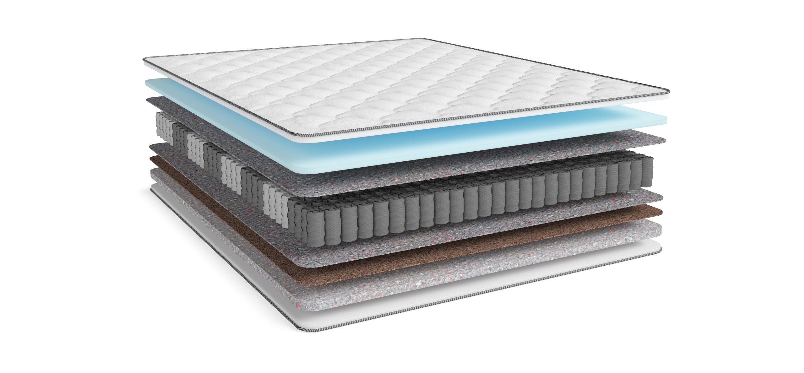 Материалы, такие как термовойлок и ANATOMIX LUX, добавляют дополнительные слои комфорта и продлевают срок службы матраса, обеспечивая умеренную жесткость и упругость, а также отличную воздухопроницаемость.