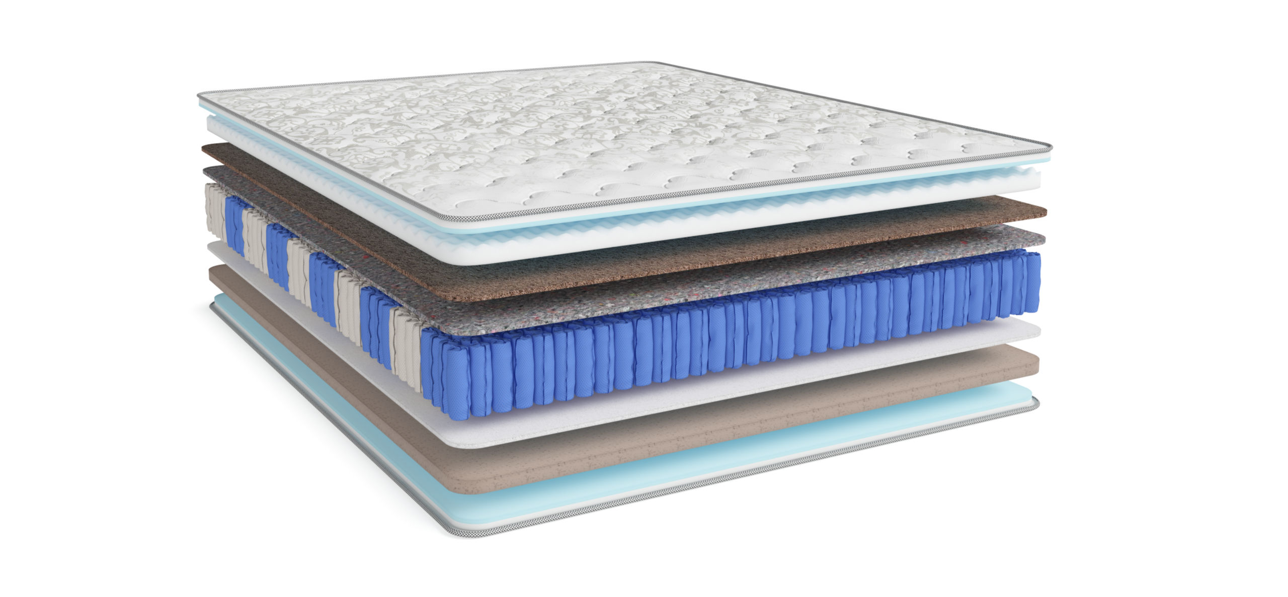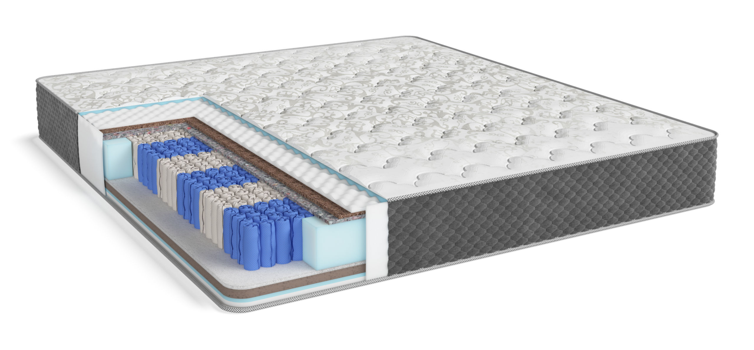 Пена с эффектом памяти MEMORIX AIR, латексированная кокоcовая койра, термовойлок, НПБ KING SPRING 1650, слой BOSS SKIN, пена COPPERFOAM с частицами меди